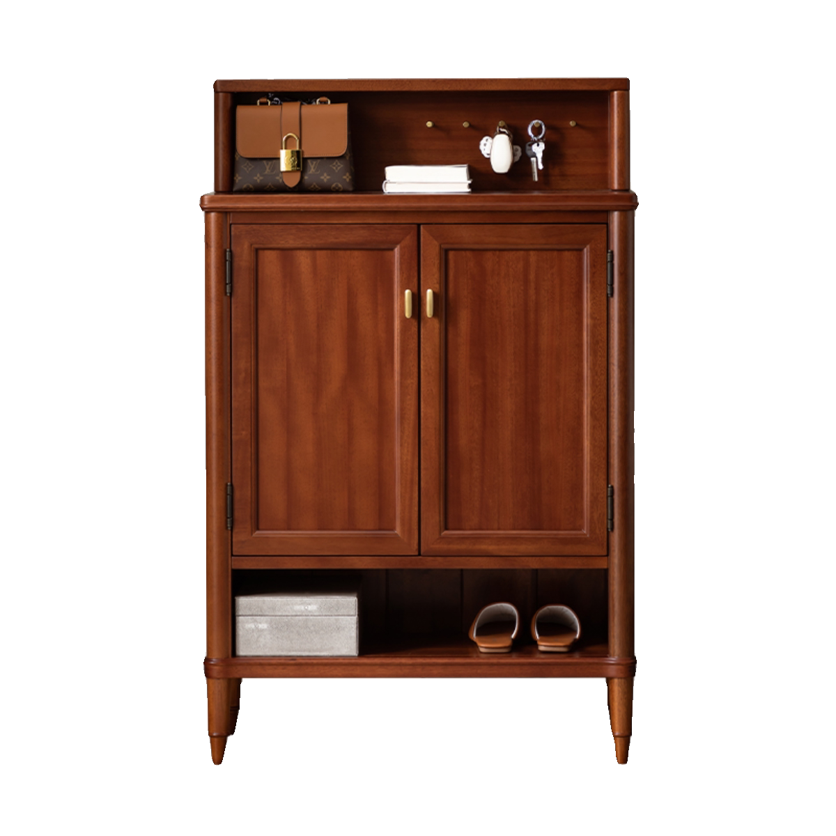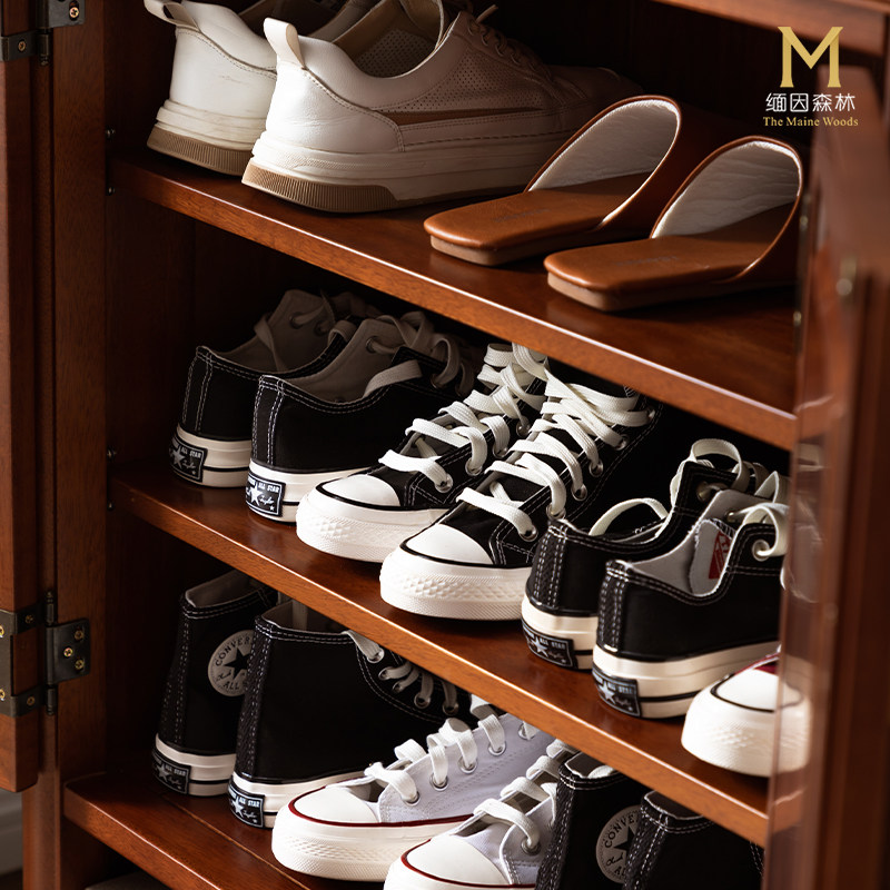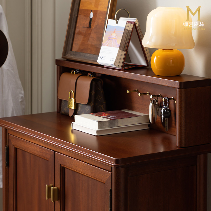 布拉格鞋柜 全实木美式轻奢玄关柜中古风家用门厅隔断整装对开门