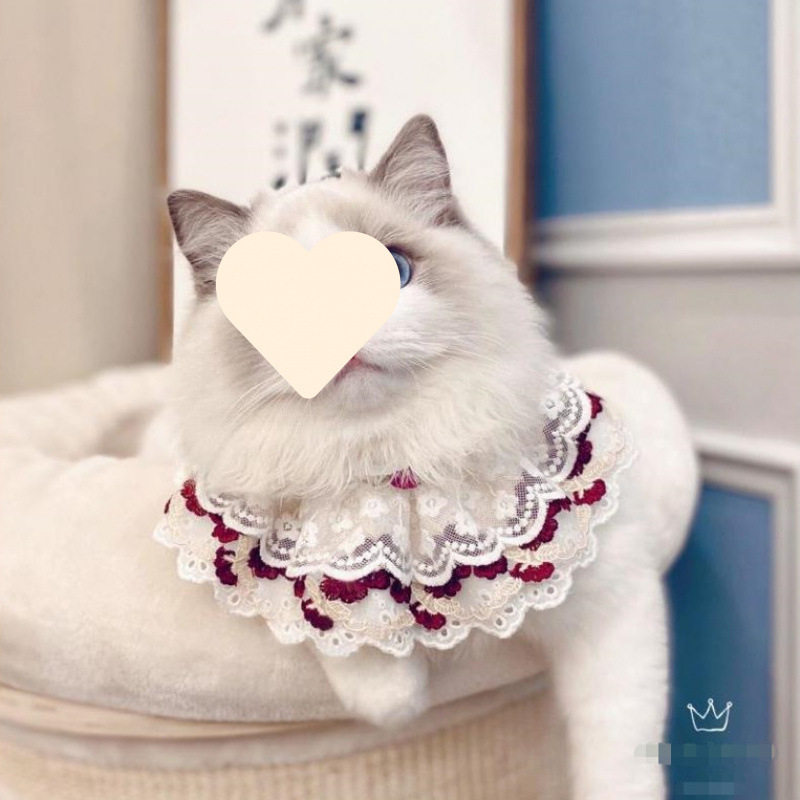猫咪围脖狗狗宠物饰品项圈铃铛蝴蝶结领结蕾丝针织口水巾围嘴项链