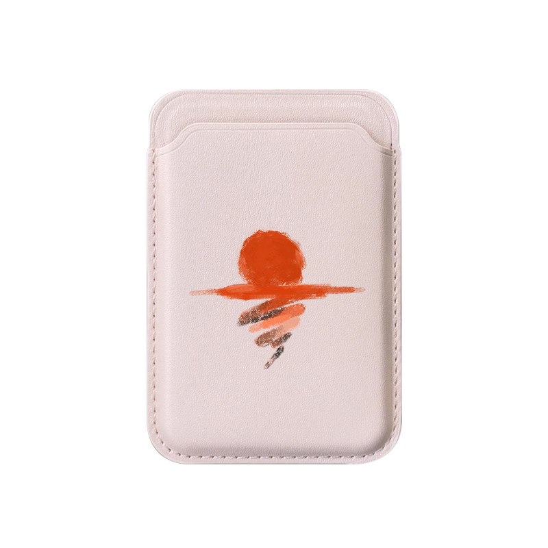 油画月亮太阳适用苹果magSafe磁吸卡包iphone16promax皮革15卡套式14pro艺术13门卡配件插卡槽12皮质卡夹钱包
