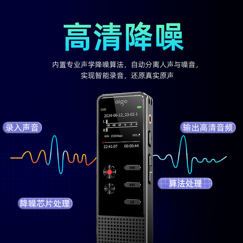 超长录音 镜面大屏 双麦降噪 声控录音