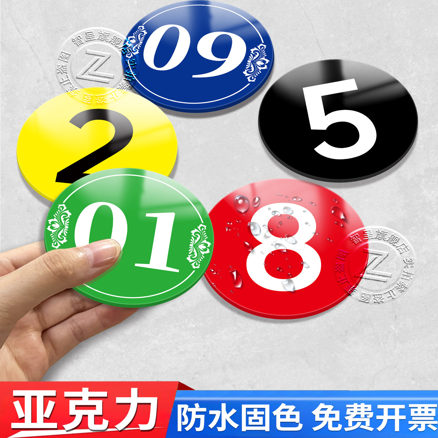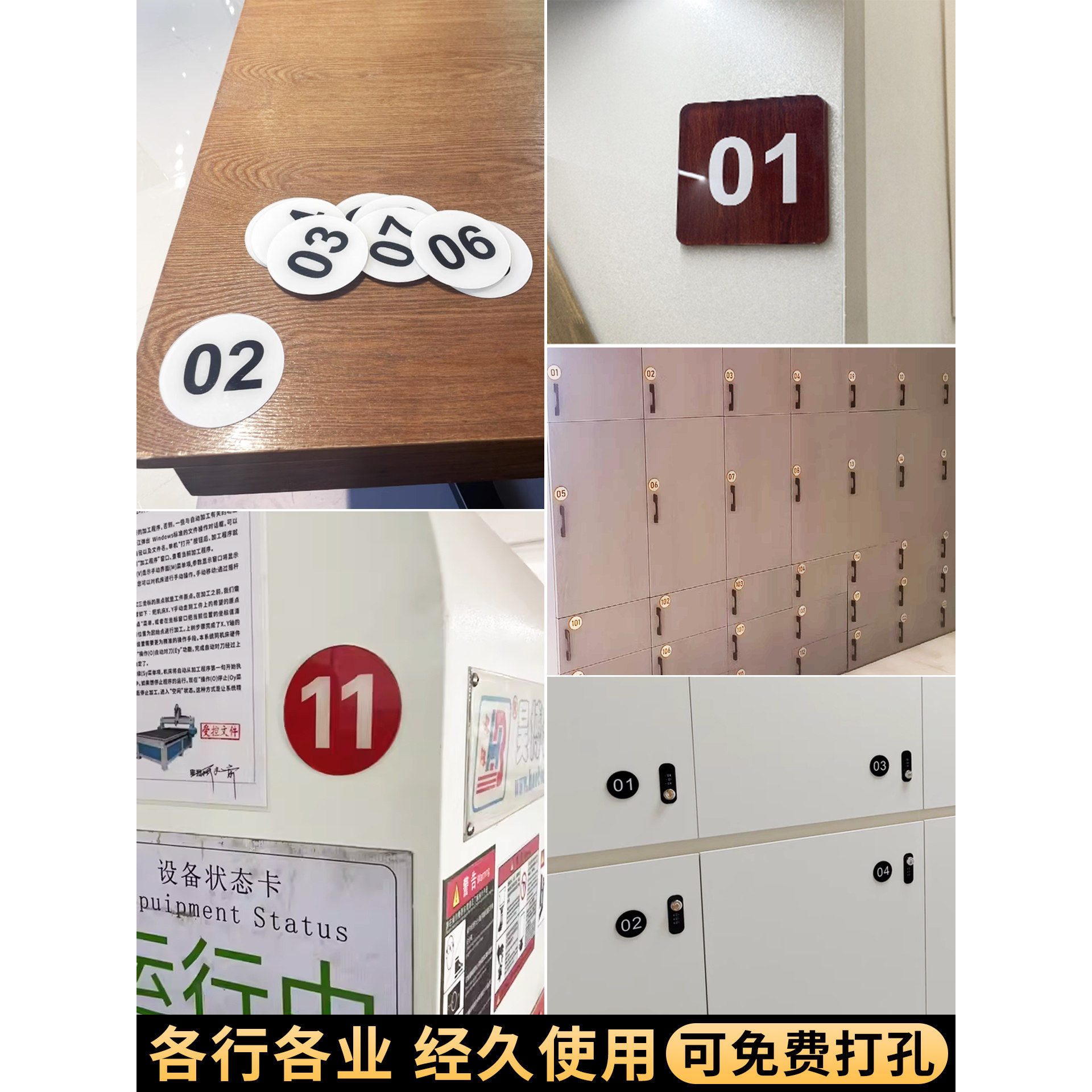 亚克力数字牌号码牌序号数字贴机台编号设备牌打孔货架桌号储物柜号网吧酒店门牌号码衣柜编号牌餐桌号牌定制