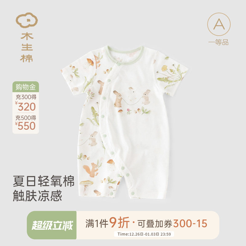 【轻氧棉】宝宝夏季短袖连体衣婴儿透气薄款哈衣爬服睡衣可爱夏装