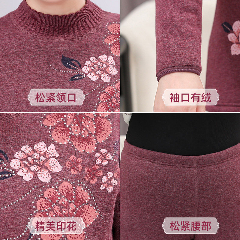 奶奶冬装保暖内衣套装女中老年人妈妈秋衣秋裤老太太加绒加厚秋冬