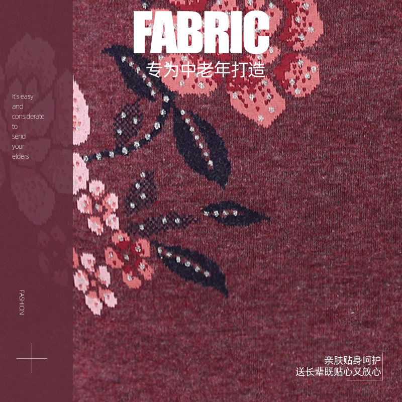 妈妈长袖打底衫秋冬季德绒保暖上衣女中老年大码宽松加厚圆领秋衣