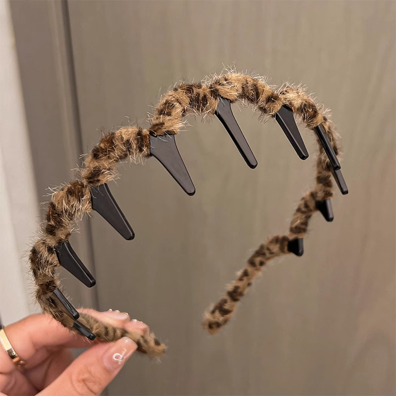 甜酷豹纹带齿波浪发箍女秋发根蓬松神器洗脸压发防滑头箍发卡头饰