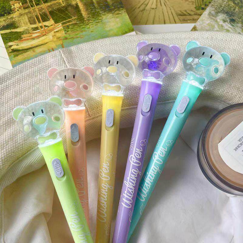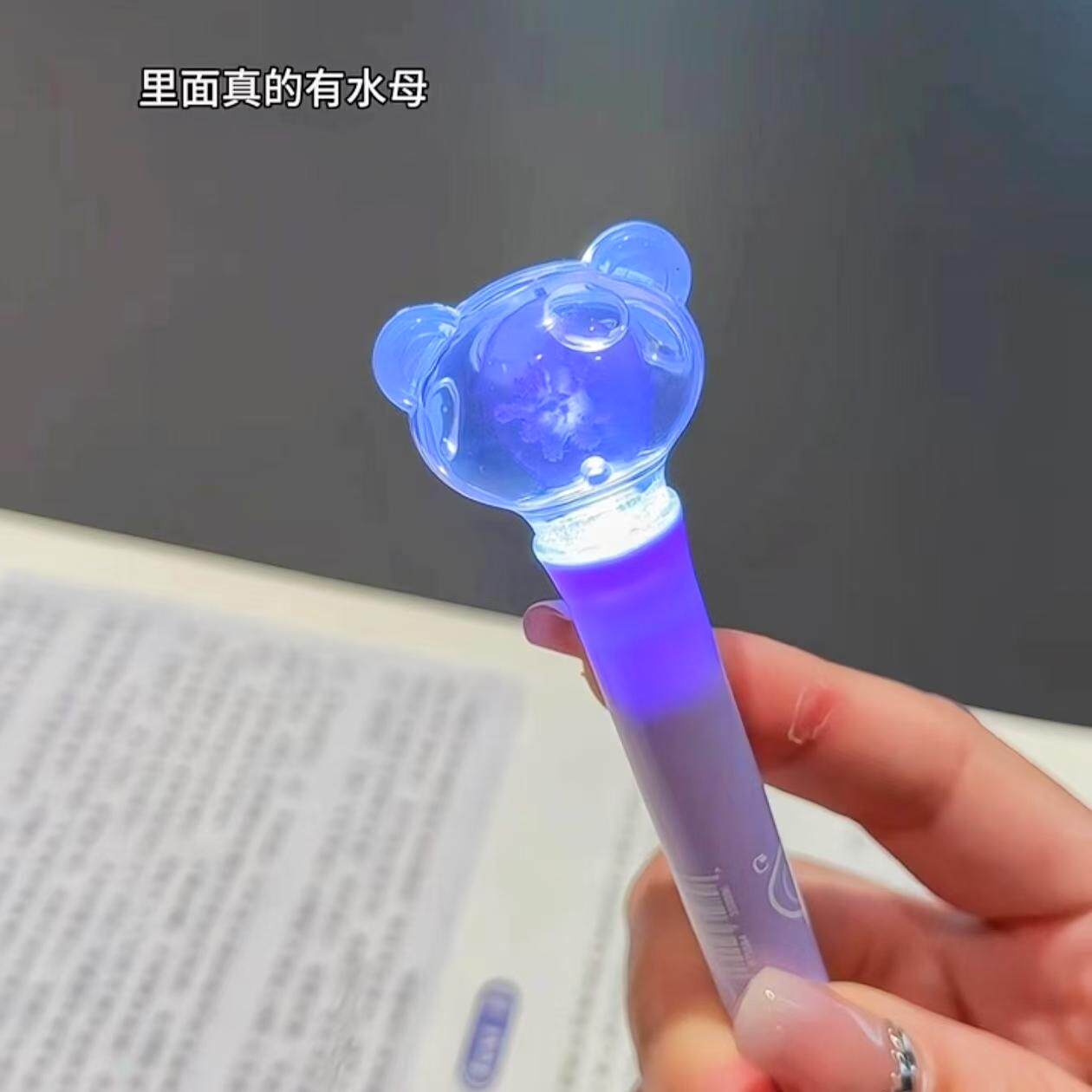 水母笔可爱高颜值小猪发光笔创意个性水母标本中性笔学生上学专用