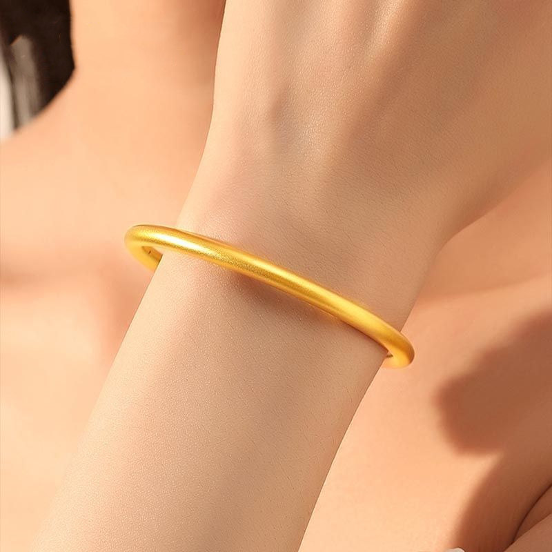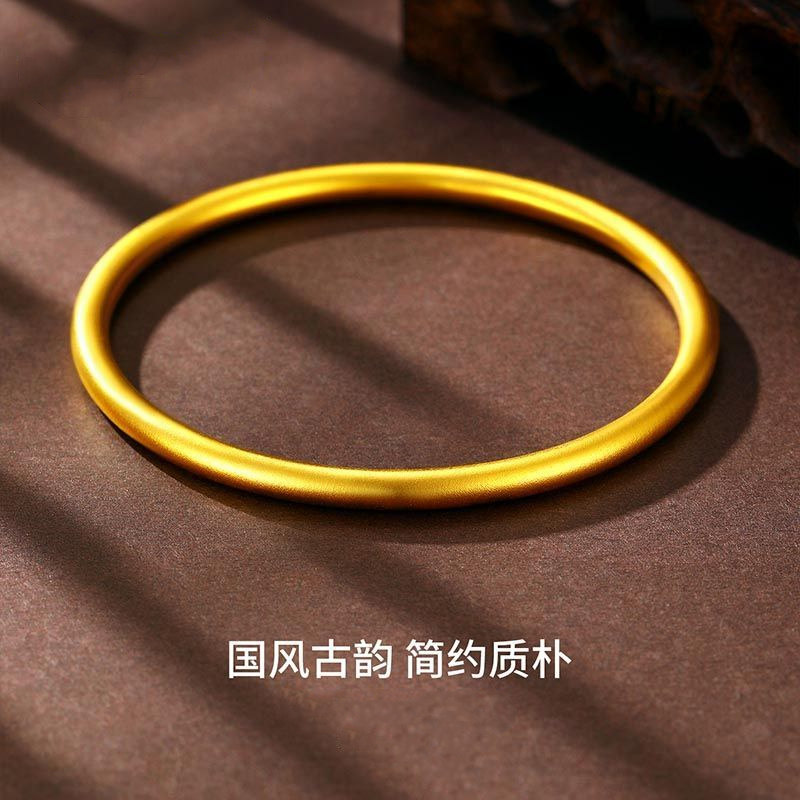 金店同款古法素圈999手镯女款仿黄金镯子传承首饰妈妈礼物镀金