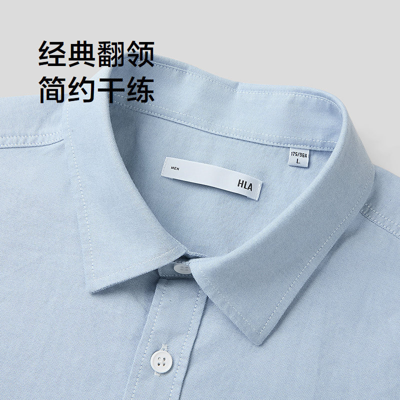 HLA/海澜之家山不在高纯棉牛津纺短袖白色衬衫春夏休闲透气上衣男