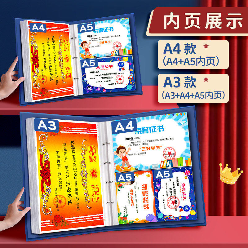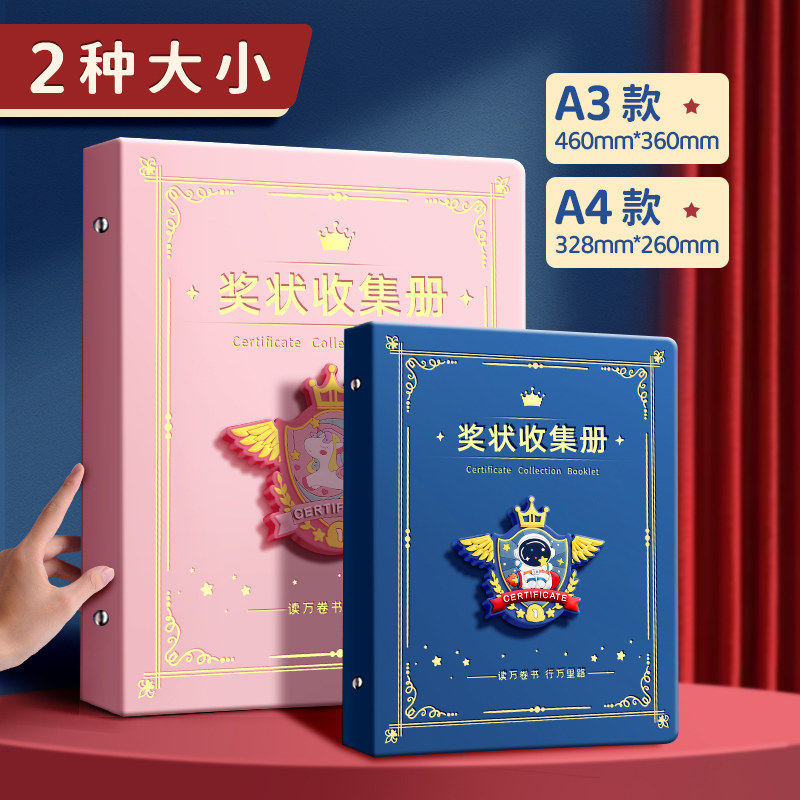 a4奖状收集册男孩女孩荣誉证书收纳袋小学生儿童奖状a3画册相册收纳整理神器作品收纳册可挂墙展示奖状文件夹