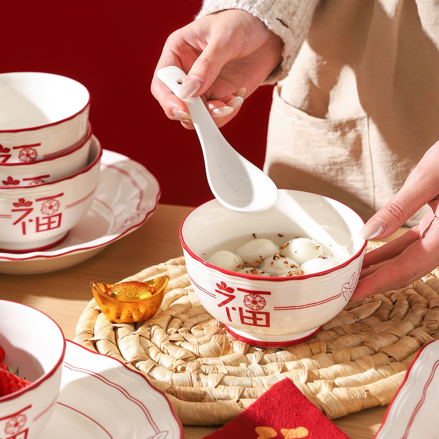 高档碗碟餐具陶瓷新婚礼物送新娘红色碗盘筷套装乔迁新居结婚礼盒