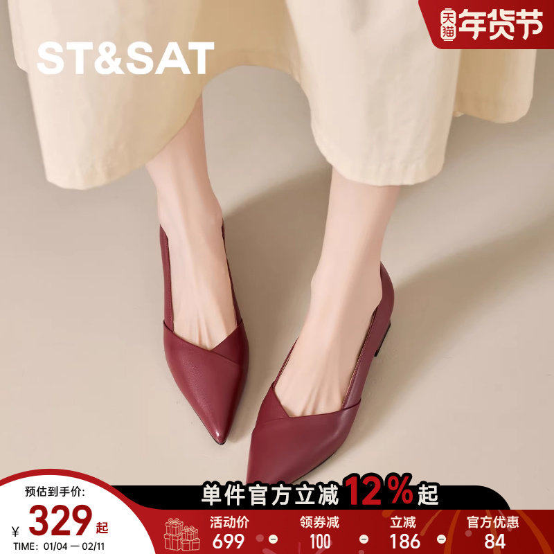 星期六复古尖头高跟浅口单鞋女秋季新款不累脚粗跟工作通勤小皮鞋