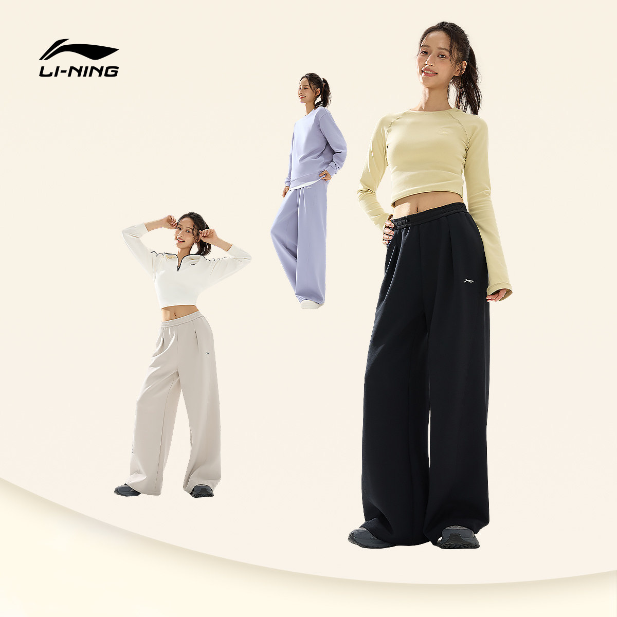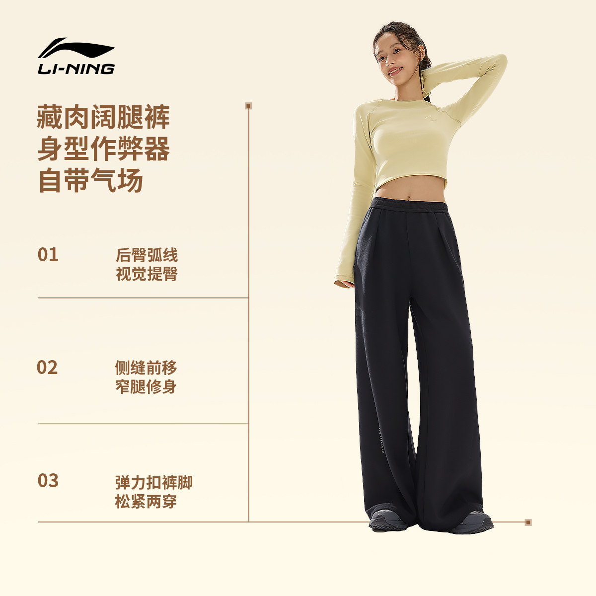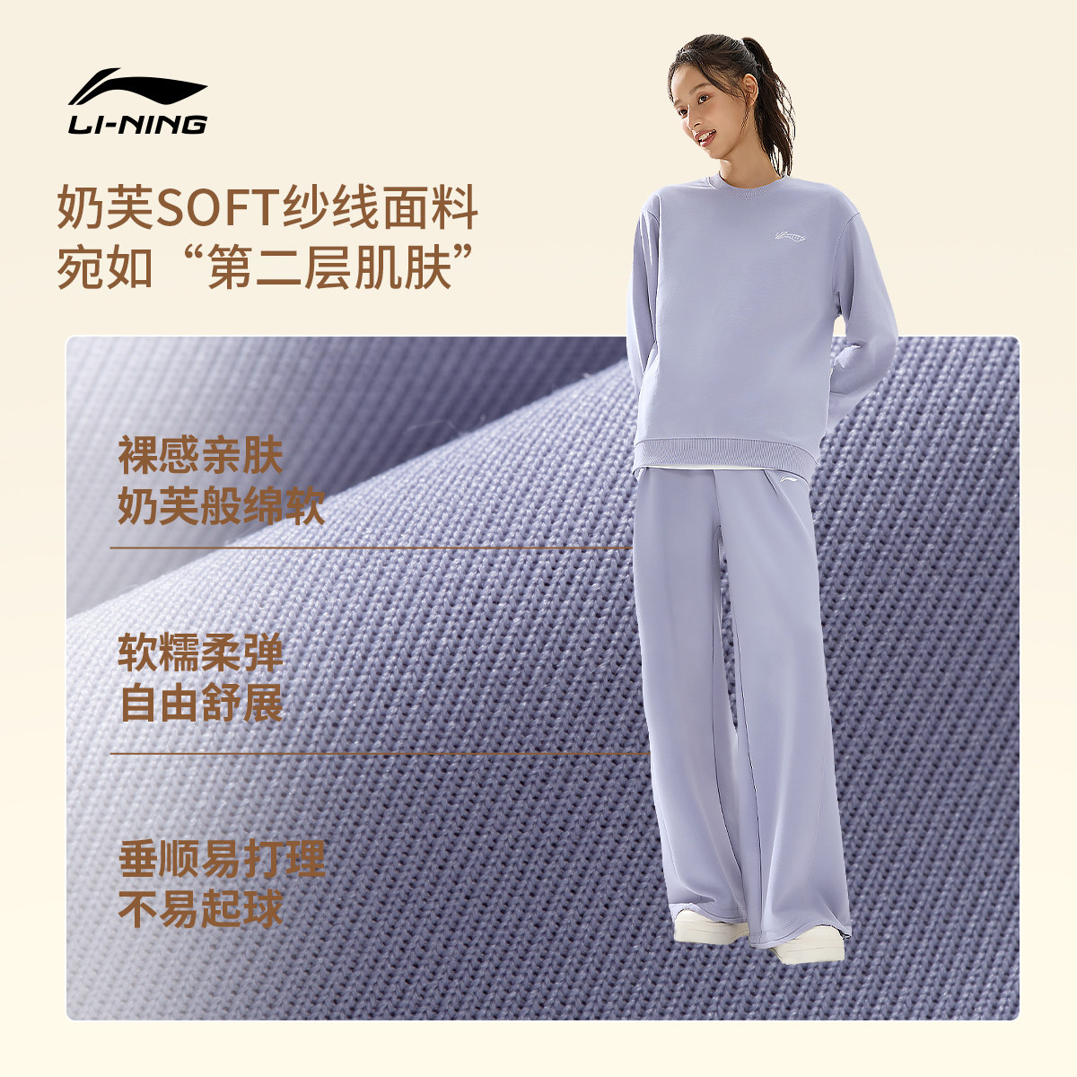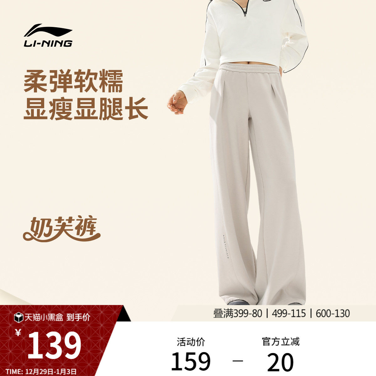 李宁奶芙裤丨阔腿裤女子新款卫裤健身长裤冬季休闲直筒针织运动裤