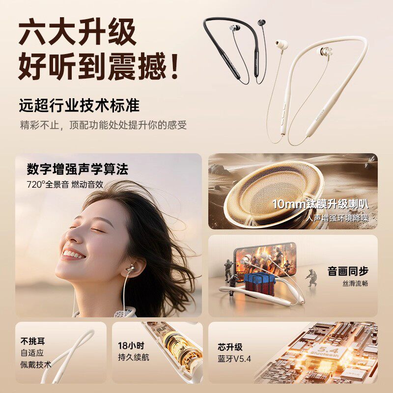 超长续航大电量蓝牙耳机无线颈挂脖式运动2025新款跑步专用高音质