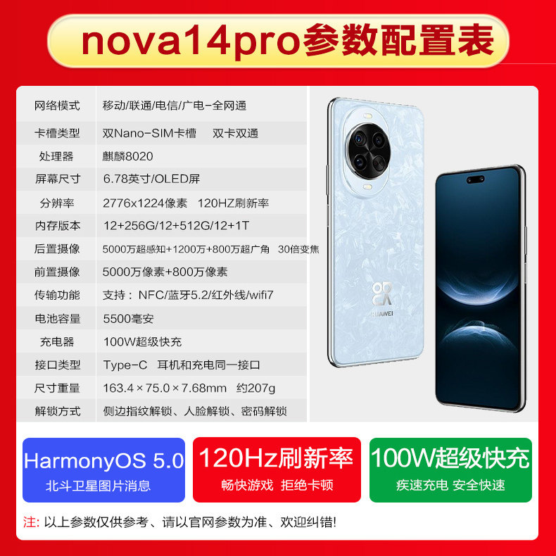 【新款上市】Huawei/华为 nova 14 Pro 全网通NFC鸿蒙AI智能手机微曲屏华为官方旗舰店正品官网学生游戏手机
