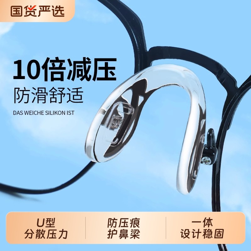 眼镜鼻托一体式德国U型硅胶配件防滑防压痕鼻垫防脱落金属鼻梁