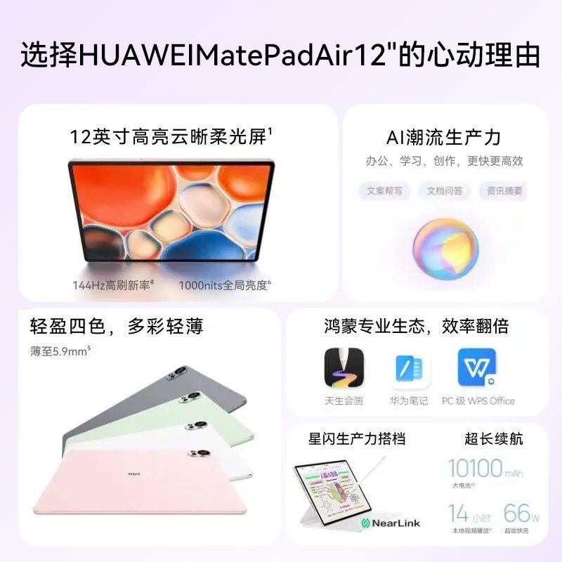 政府补贴15%/华为平板MatePad Air12英寸2025新款平板电脑144Hz高刷柔光屏办公学习绘画学生鸿蒙官方旗舰正品