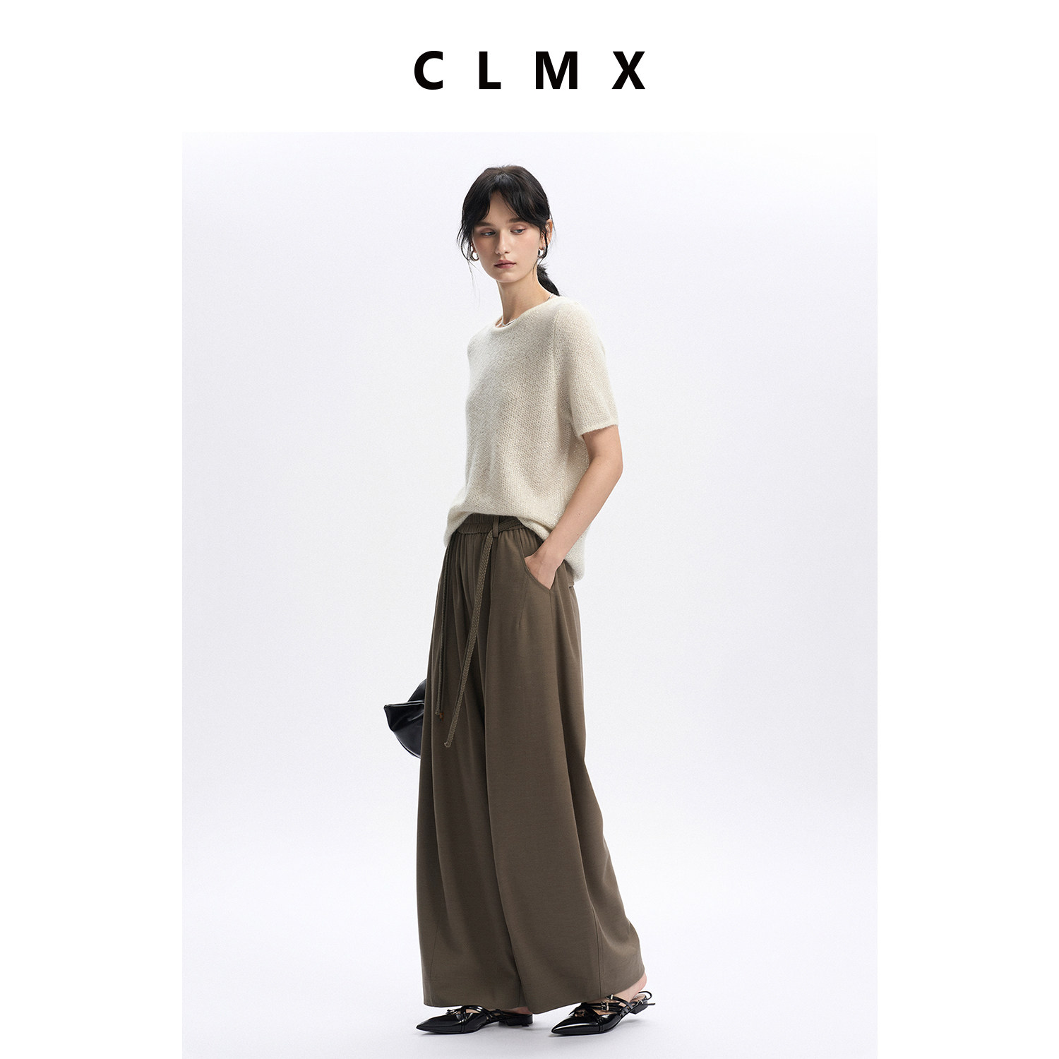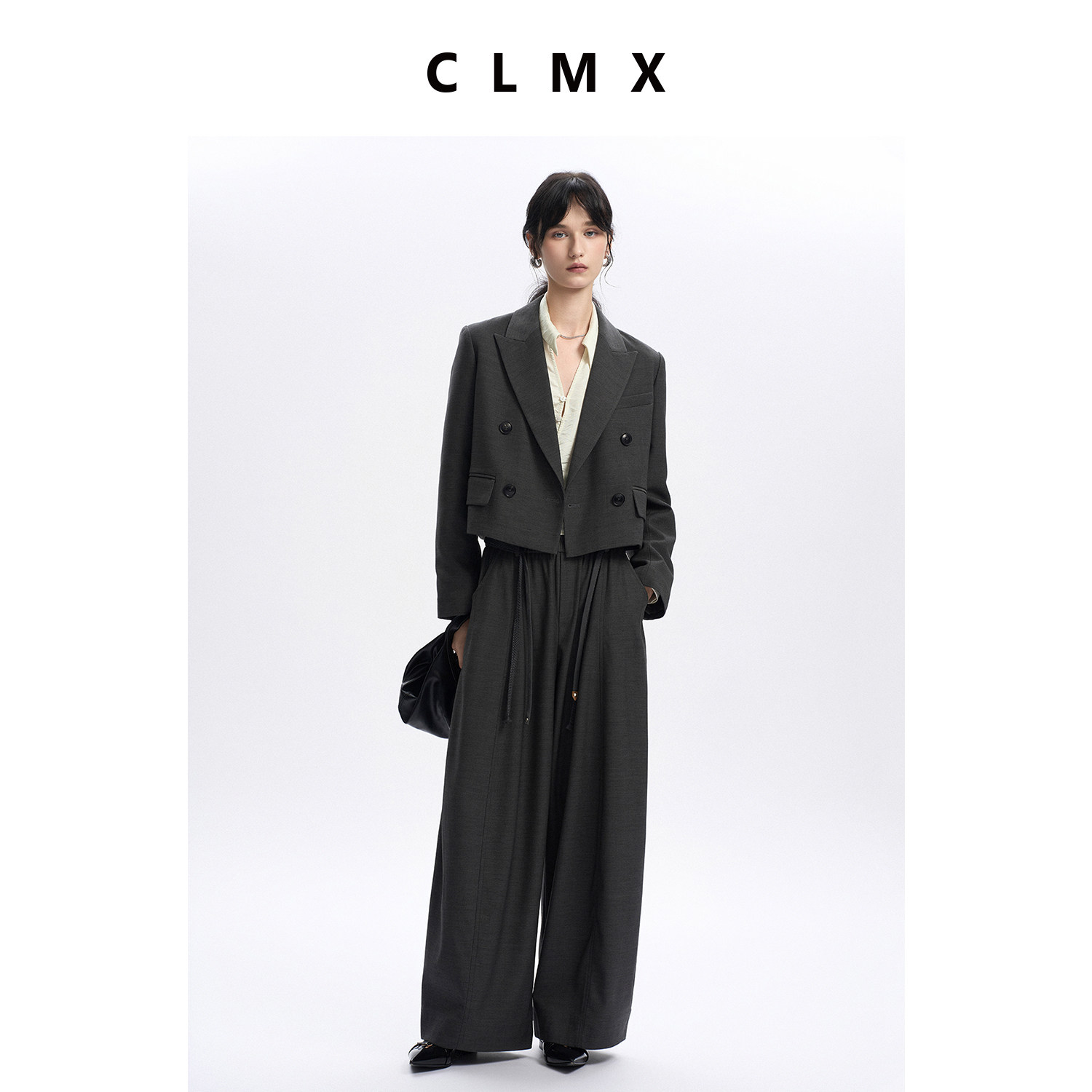 CLMX秋季老钱西装两件套莱赛尔羊毛面料双排扣外套/抽绳阔腿裤女