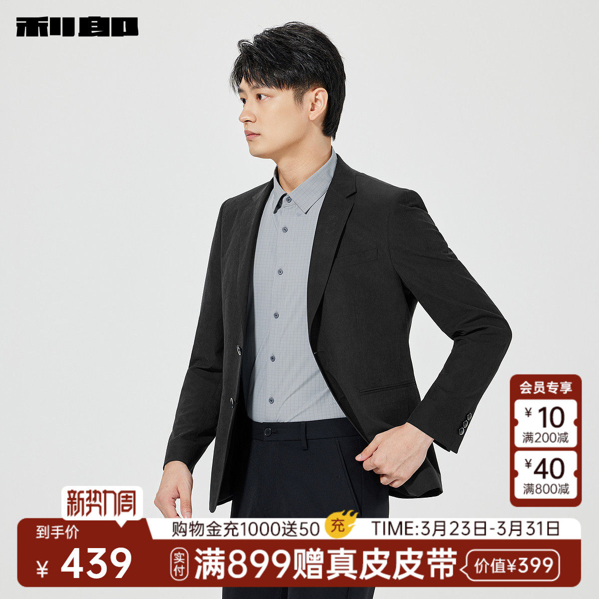 利郎官方正品 休闲西服男士春季新款商务男装平驳领修身单西外套
