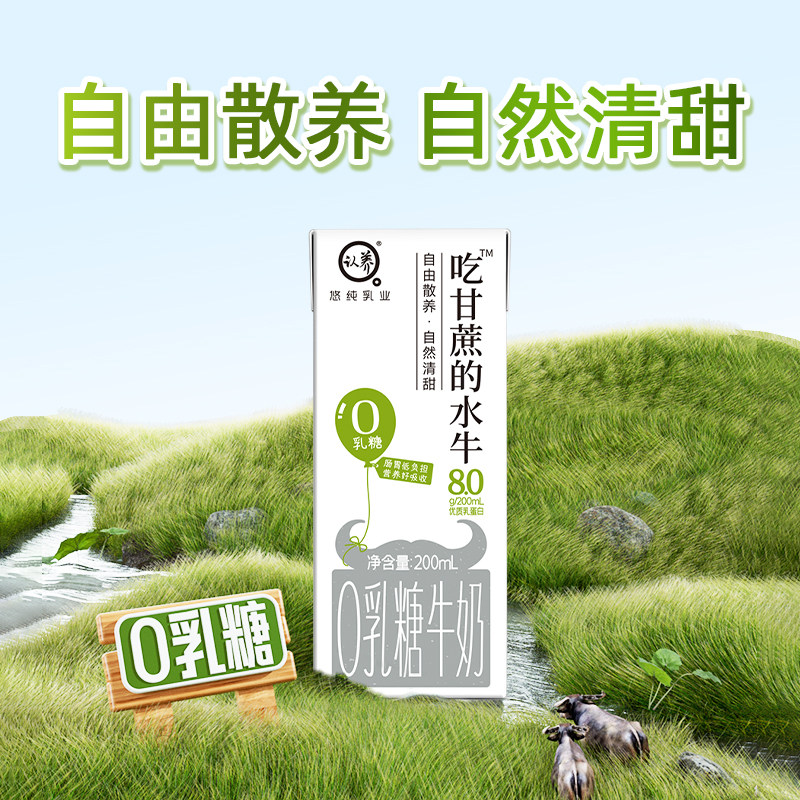 认养吃甘蔗的水牛奶200ml*16盒0乳糖牛奶学生儿童牛奶0乳糖牛奶