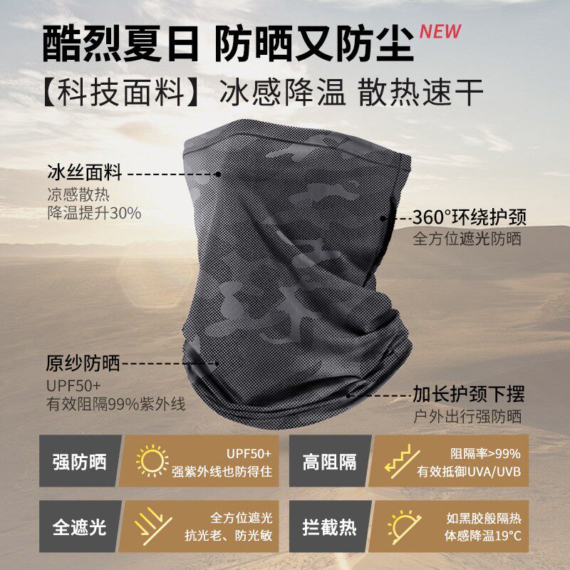 防晒面罩男士冰丝迷彩防紫外线全脸护颈新款防沙面巾脖套骑行口罩