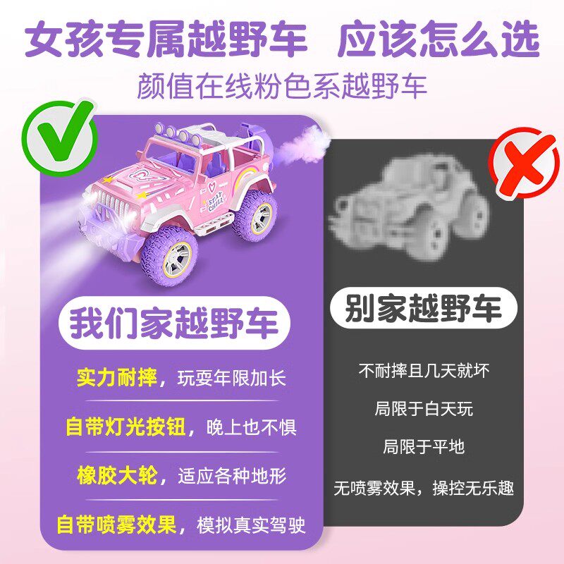 儿童遥控车女孩版汽车越野车女童女孩子的玩具3到6岁生日礼物赛车