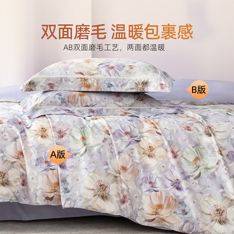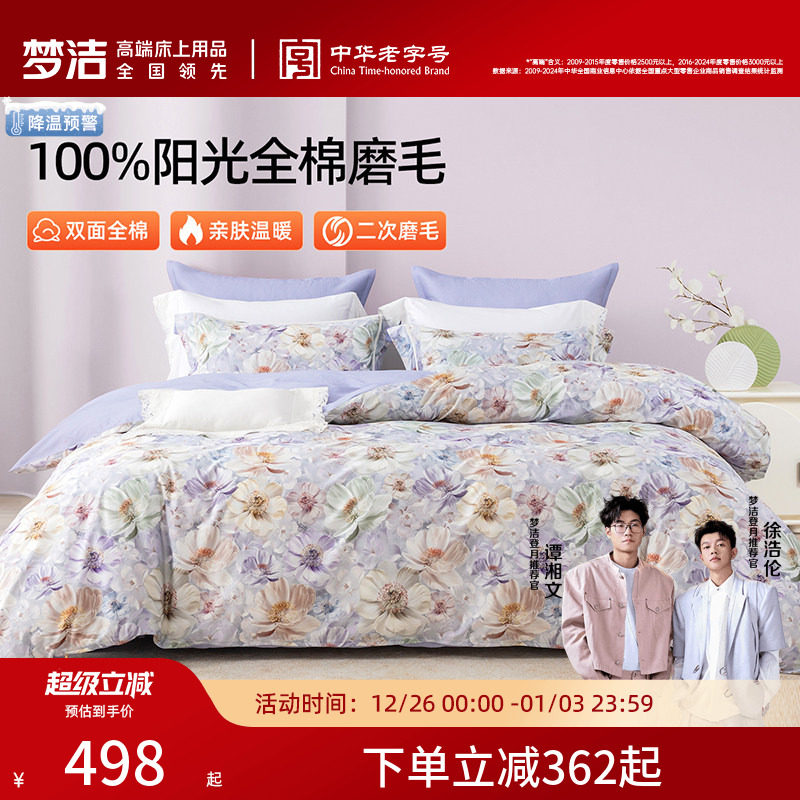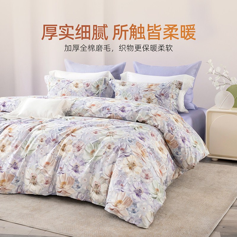 梦洁家纺全棉磨毛四件套纯棉床品保暖2025年新款秋冬季床单被套