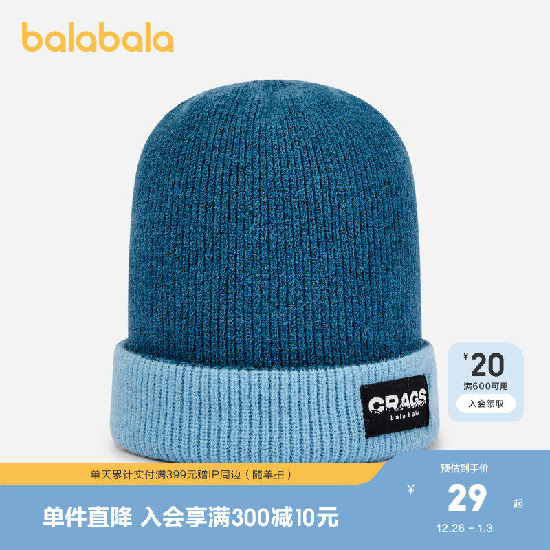 巴拉巴拉儿童帽子男童女童比尼帽护耳帽厚实保暖舒适冬季撞色时尚
