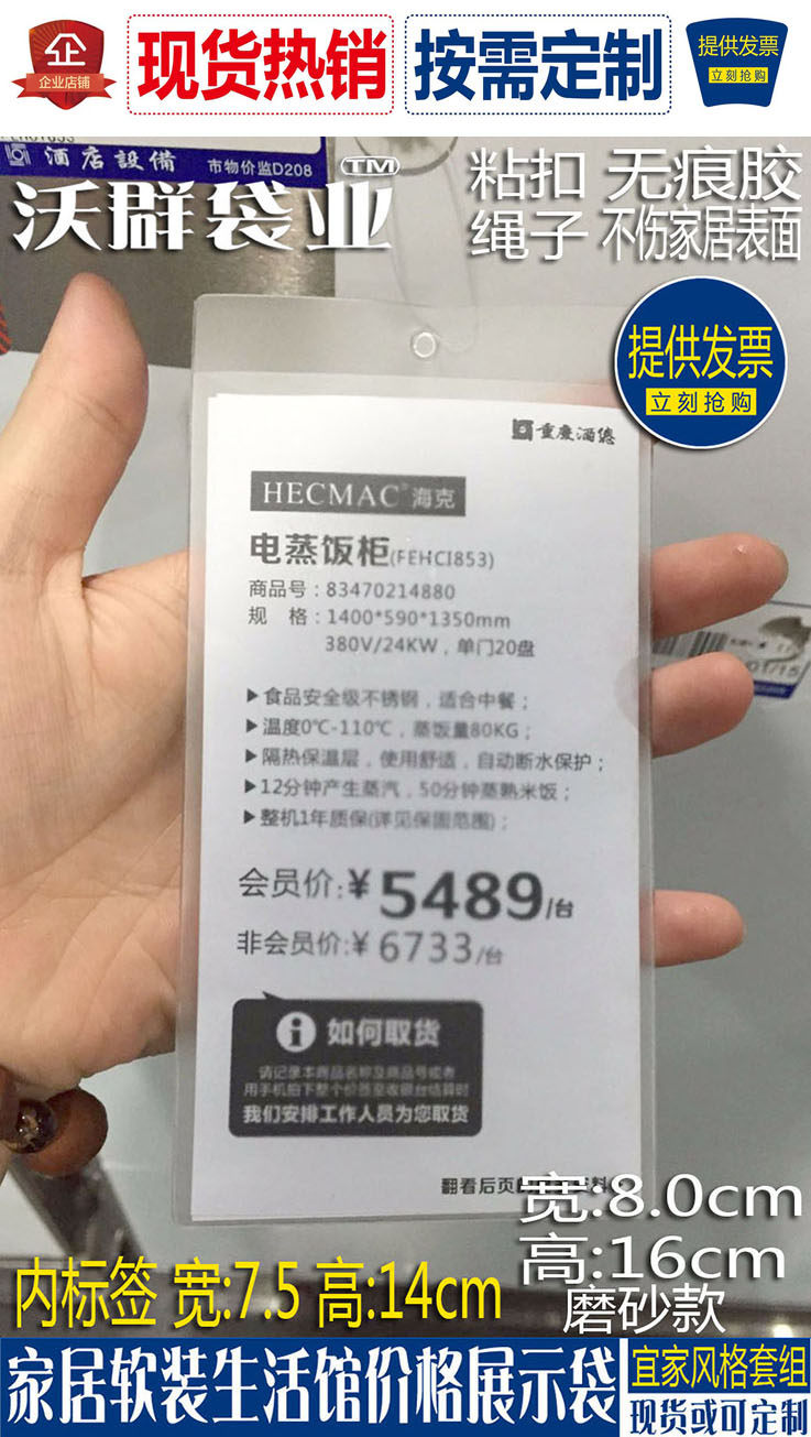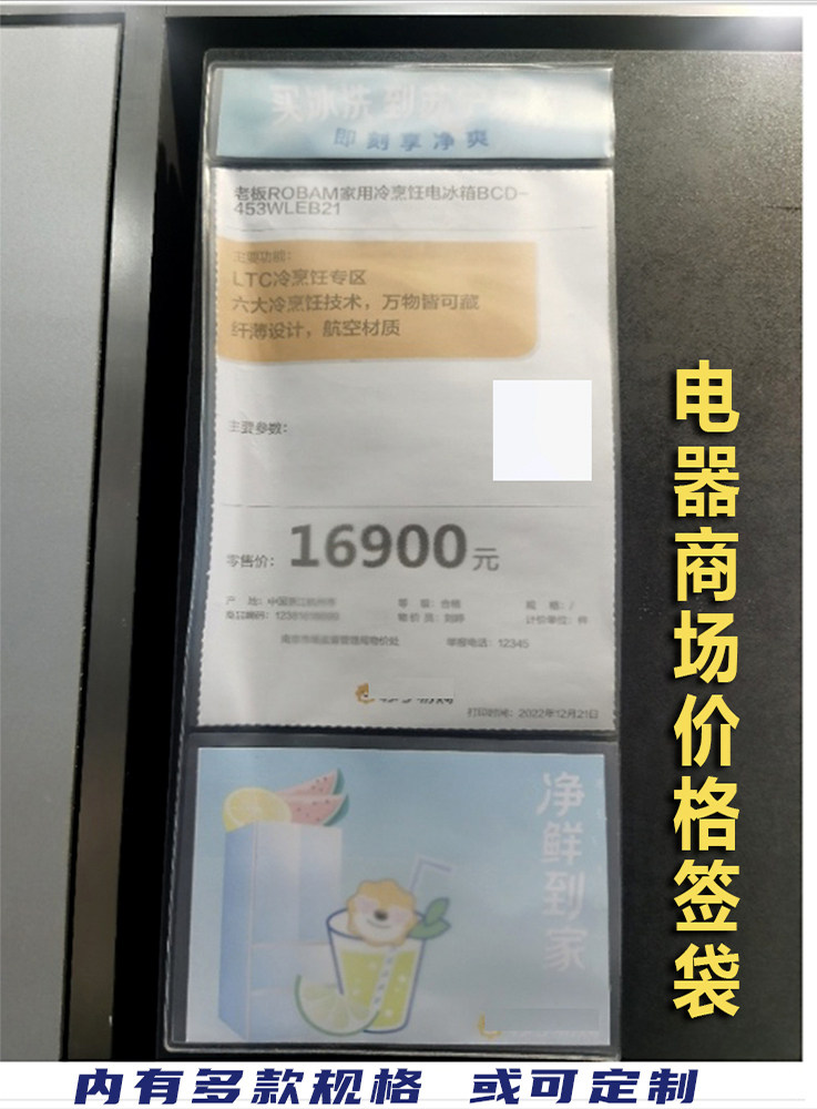 PVC标签套袋 家具窗帘办公超市价格标签袋 透明套 自粘仓储标签袋