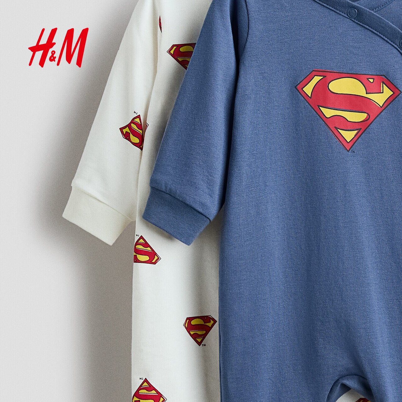 【超人】HM童装男婴连身衣2件装印花长袖睡衣哈衣爬服1092245