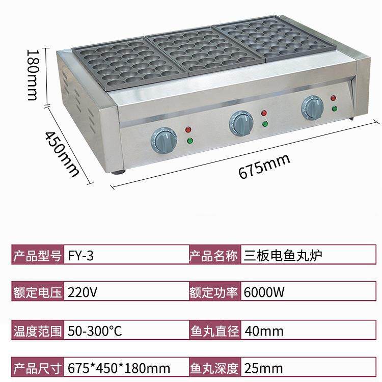杰亿三板电热鱼丸炉FY-3商用28孔三板鱼丸炉章鱼丸子机章鱼烧丸子