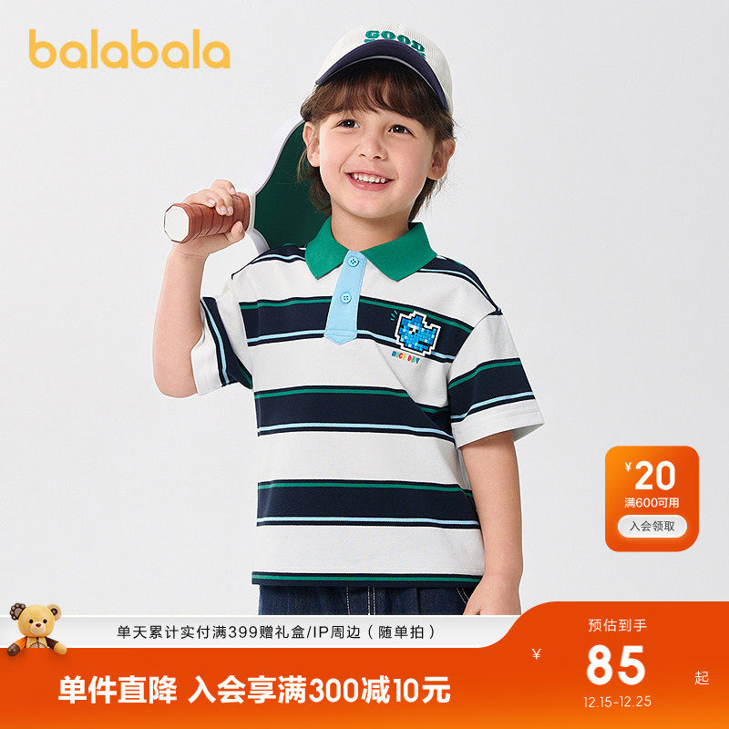 巴拉巴拉儿童短袖t恤条纹POLO衫男童装2025夏装新款休闲百搭上衣