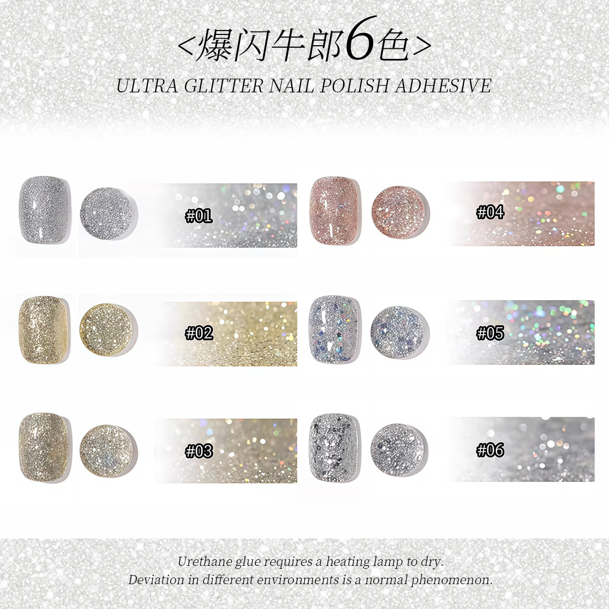 金色银色美甲铂金胶爆闪甲油胶彩绘胶美甲店专用亮片光疗持久细闪