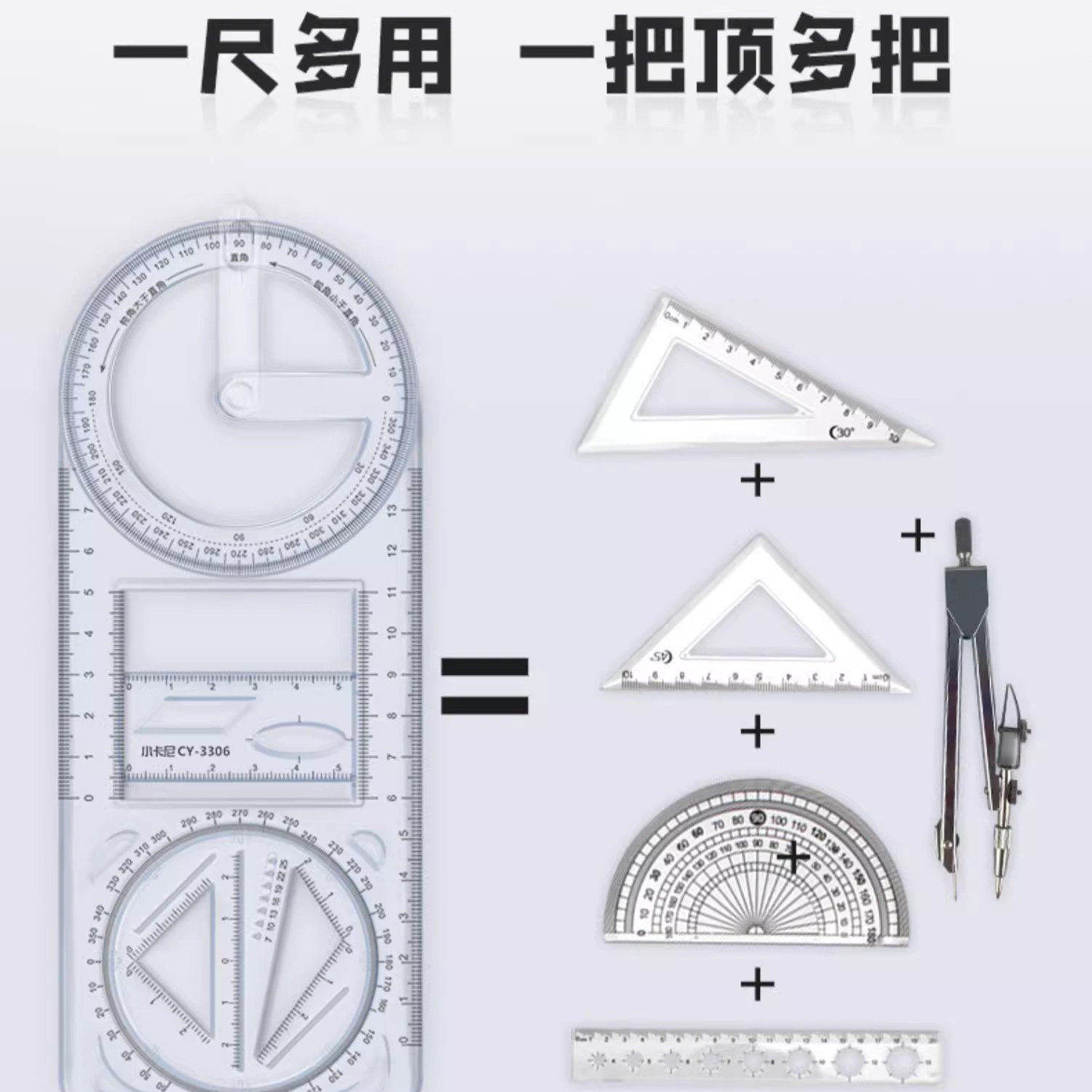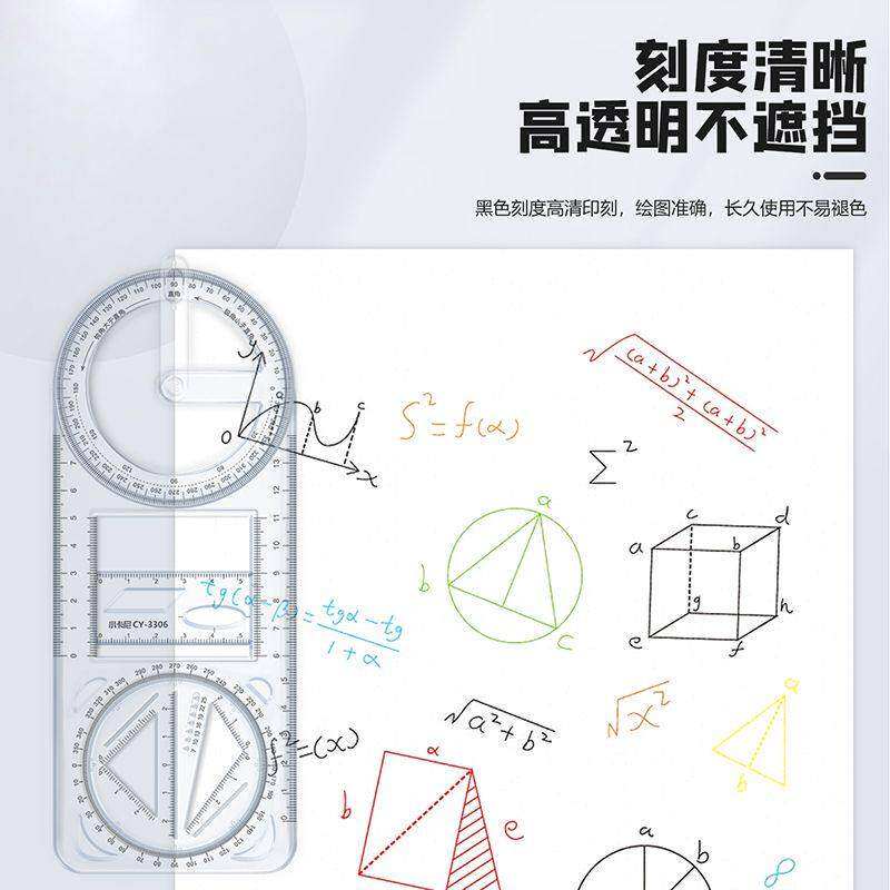 数学多功能绘图尺中小学生几何尺初高中几何函数尺三角尺量角器