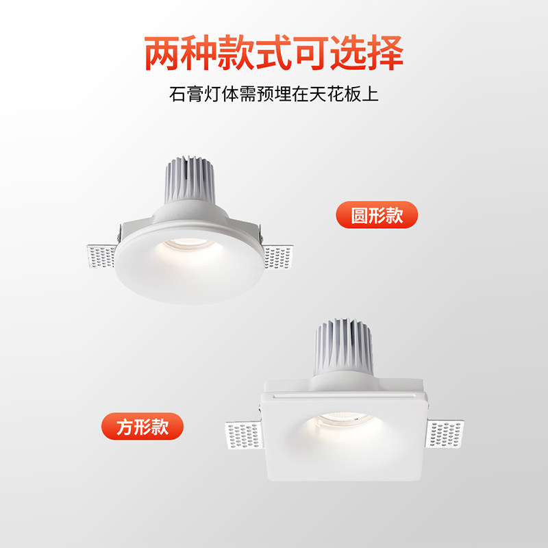 石膏灯全光谱护眼射灯无边框led智能客厅防眩光嵌入式预埋COB筒灯