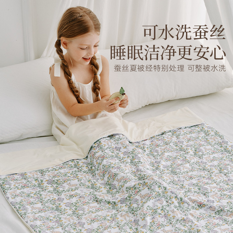 英氏母婴A类凉感蚕丝被100%桑蚕丝夏被幼儿园亲肤透气儿童蚕丝被