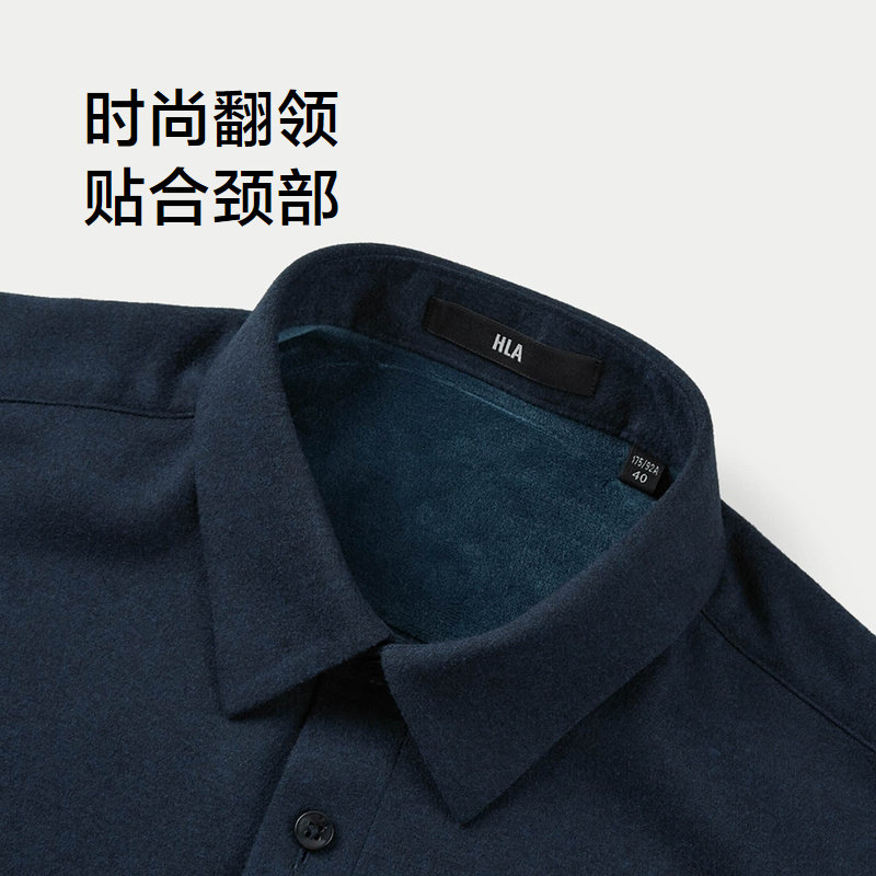 HLA/海澜之家暖绒长袖休闲衬衫秋冬季款远红外柔软保暖衬衣男士