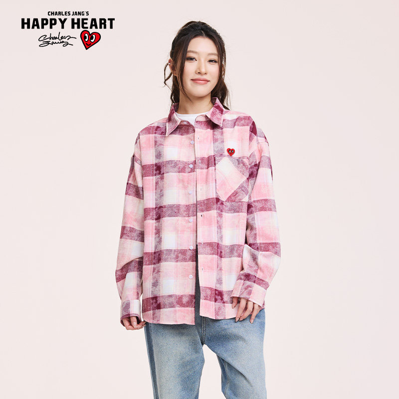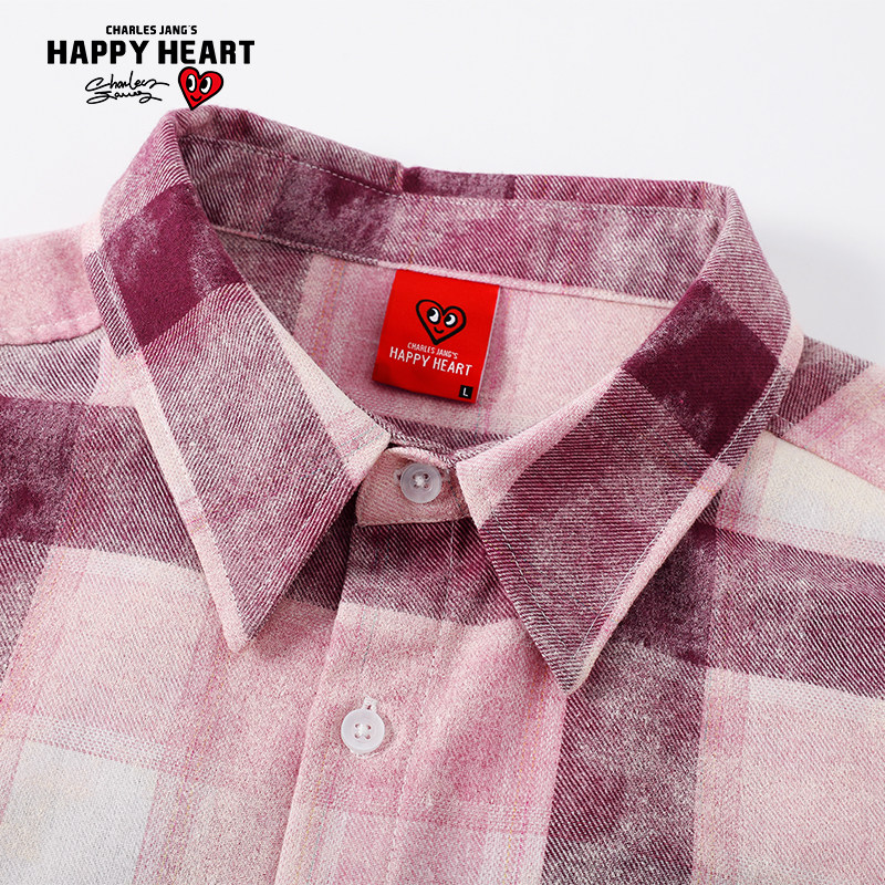 查尔斯桃心 美式复古扎染休闲格子衬衫女宽松时尚上衣外套衬衣