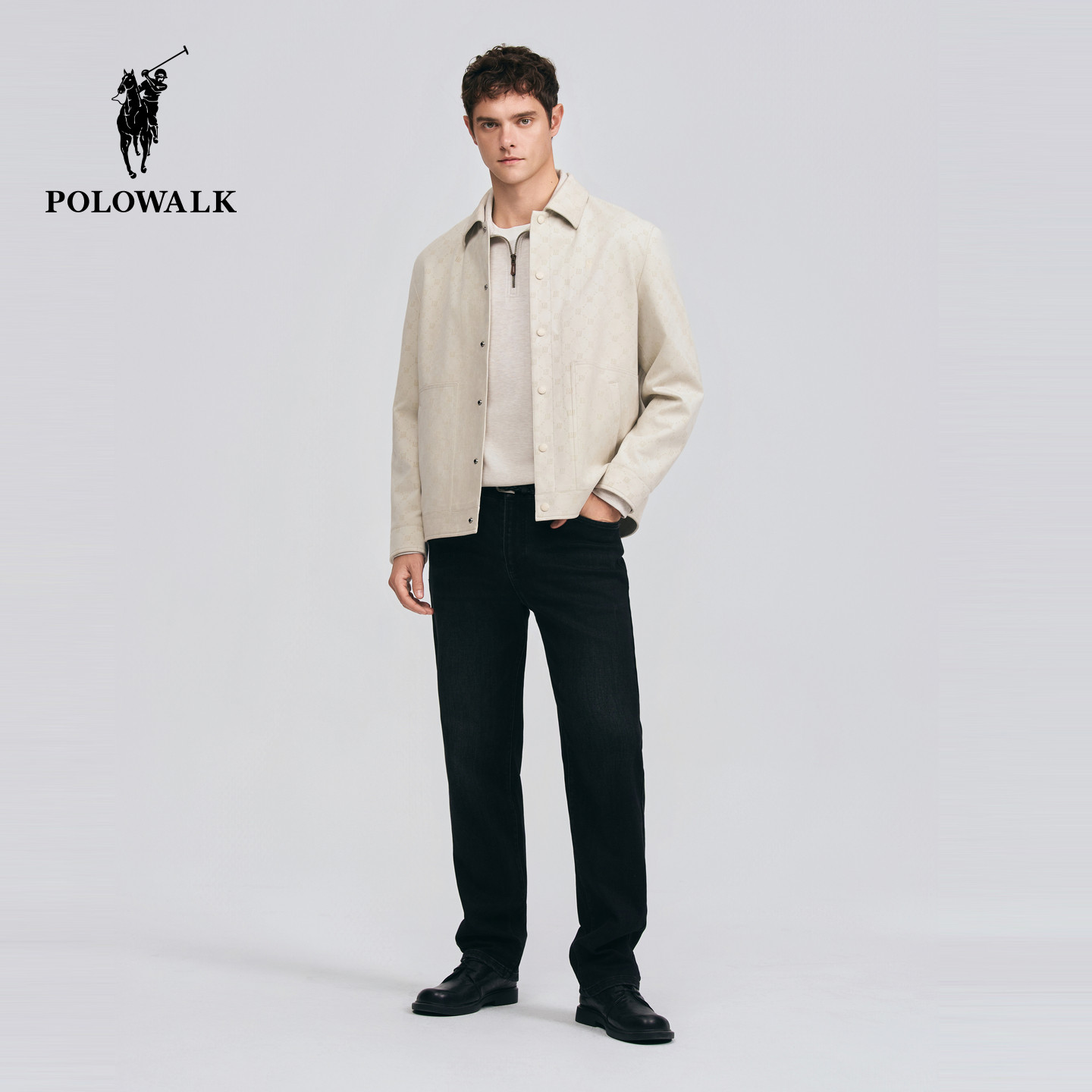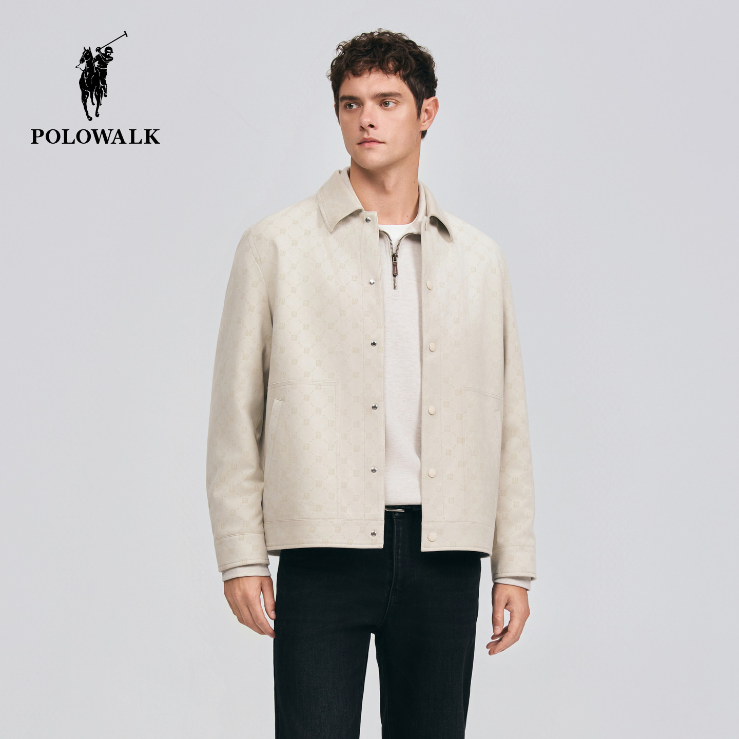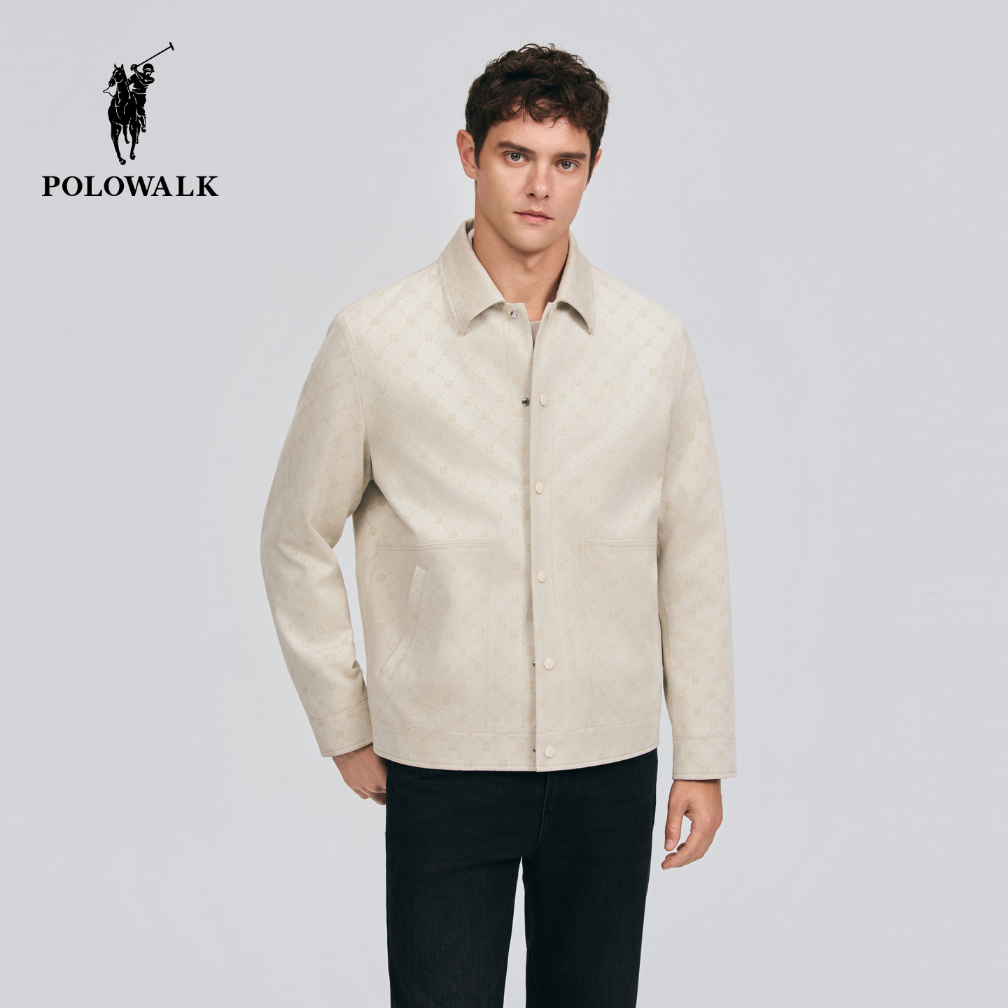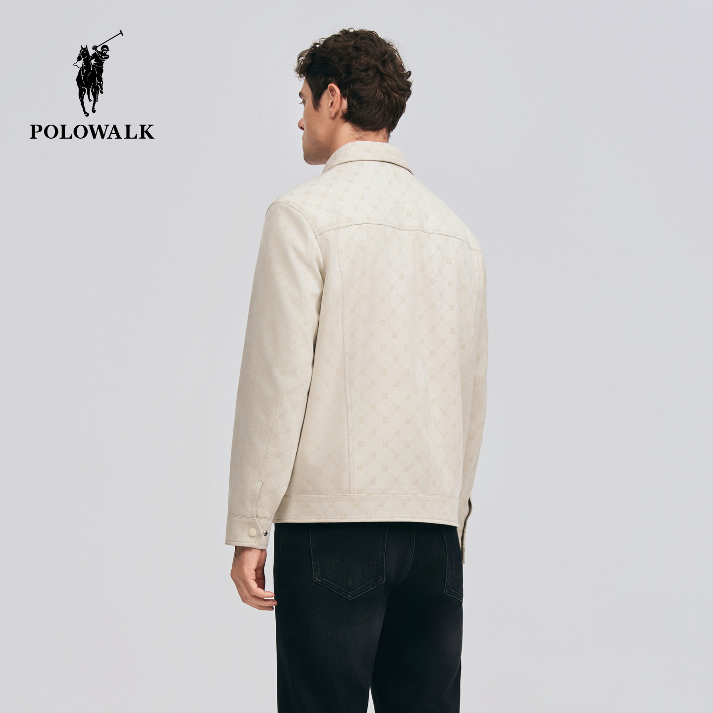 POLOWALK男式皮衣2026春季新品休闲风设计感印花翻领挺括外套
