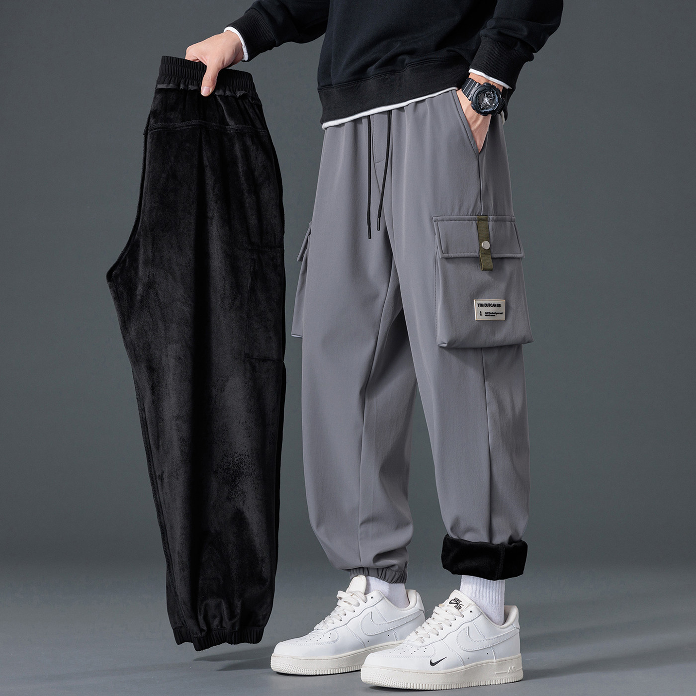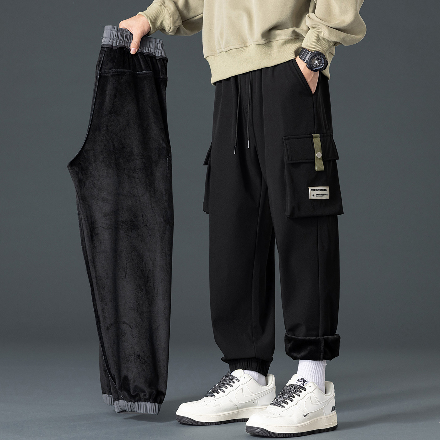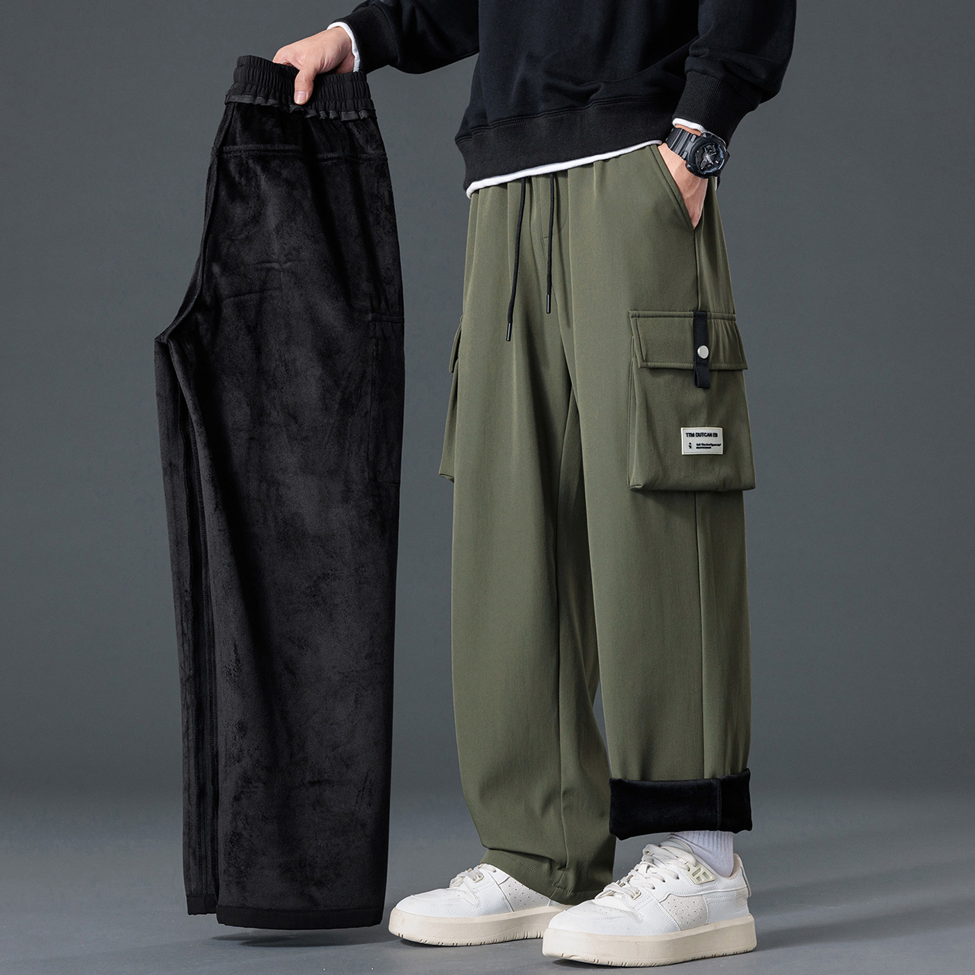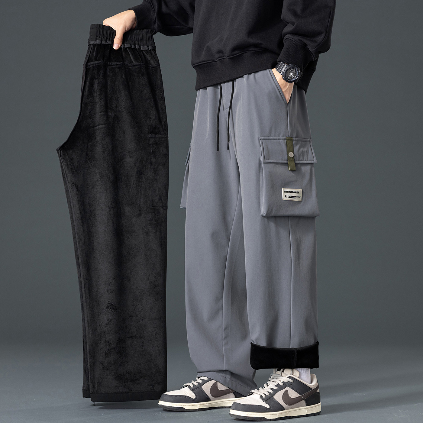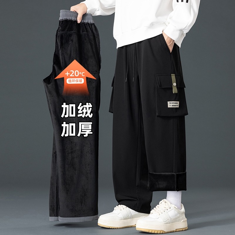 加绒加厚工装裤男士秋冬季运动卫裤直筒长裤宽松大码休闲男生裤子