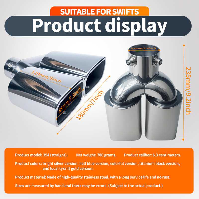 适用于原车5.3-5.8CM改装方口双出尾喉不锈钢排气管汽车装饰尾喉