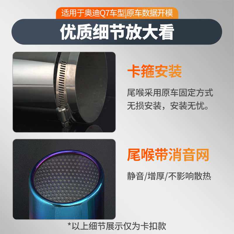 适用于07- 15老款奥迪Q7尾喉装饰3.0排气管改装3.6汽车不锈钢尾喉