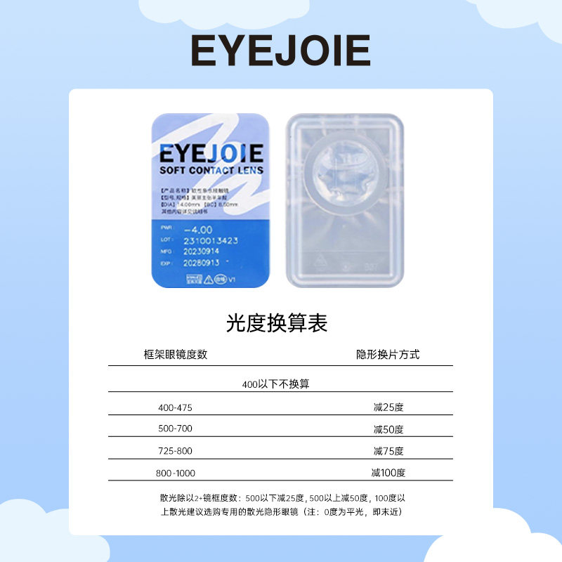 EYEJOIE隐形眼镜半年抛高清透明片近视水润水凝胶正品官方旗舰店