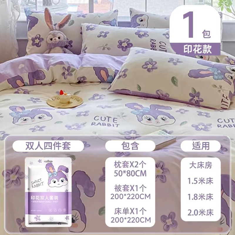 一次性床笠四件套床上床品床单被罩枕套加厚隔脏非纯棉旅行用品