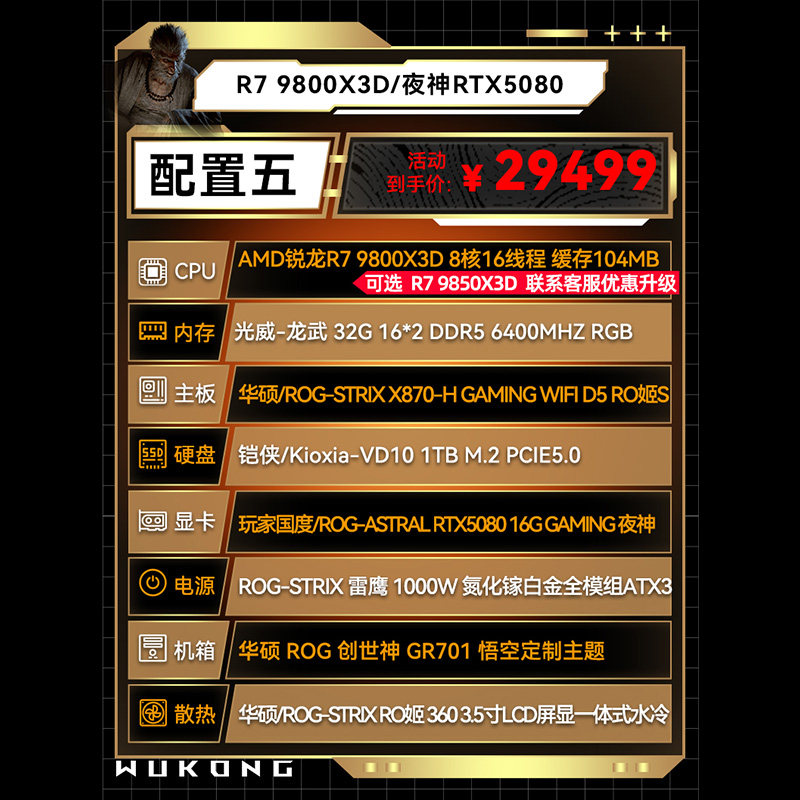 华硕ROG创世神AMD 9800X3D RTX5080 5090D显卡黑神话悟空定制主题