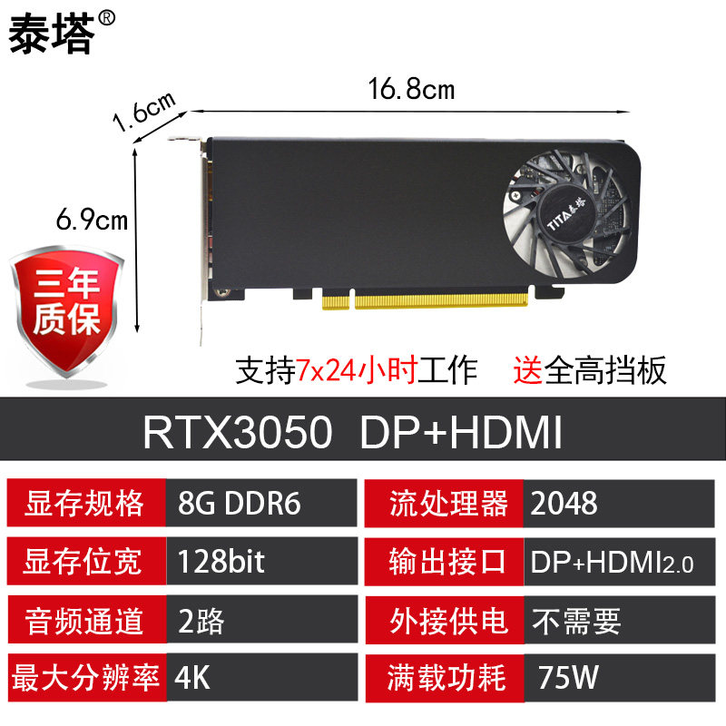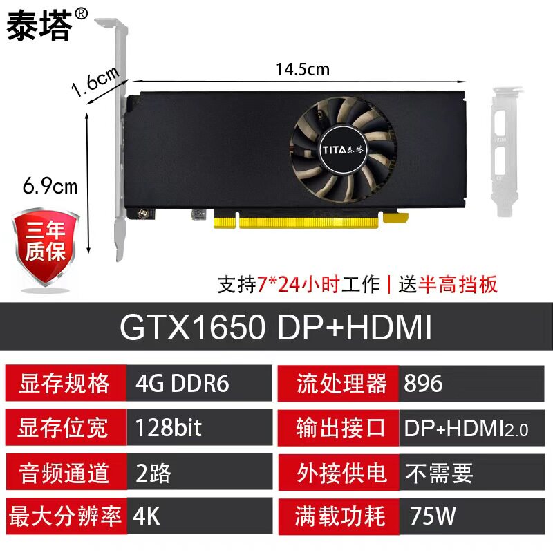 泰塔GTX1650RTX3050RX65008G半高单槽刀卡AMD工控小机箱游戏显卡