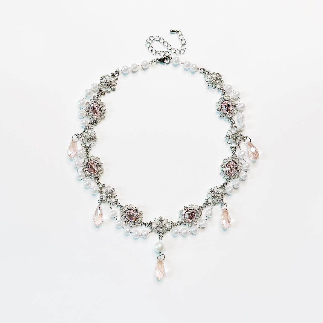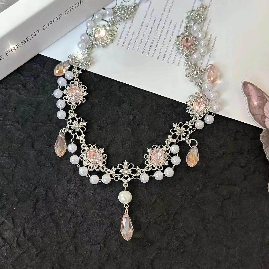 法式超仙水晶珍珠流苏项链 奢华复古月光石项圈 汉服配饰锁骨链