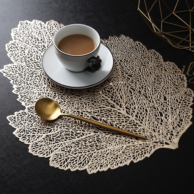 轻奢荷花防滑餐垫PVC隔热垫酒店家用西餐盘垫ins风桌垫碗垫装饰垫