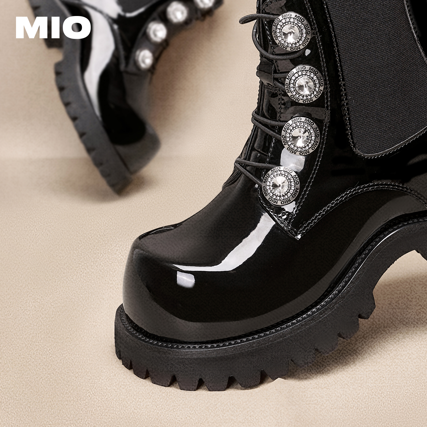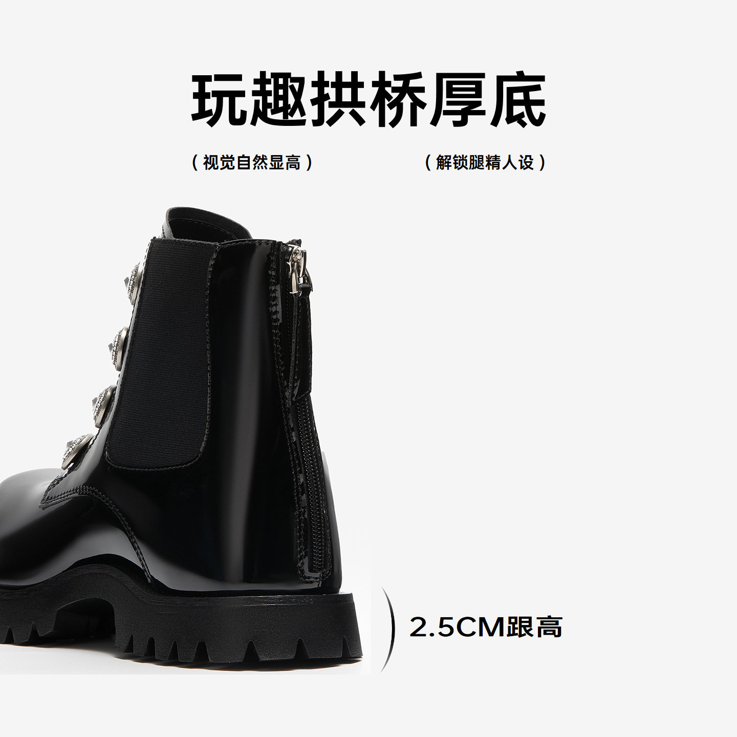 MIO米奥马丁靴2025冬季新款厚底圆头切尔西靴时装靴内增高4cm女靴