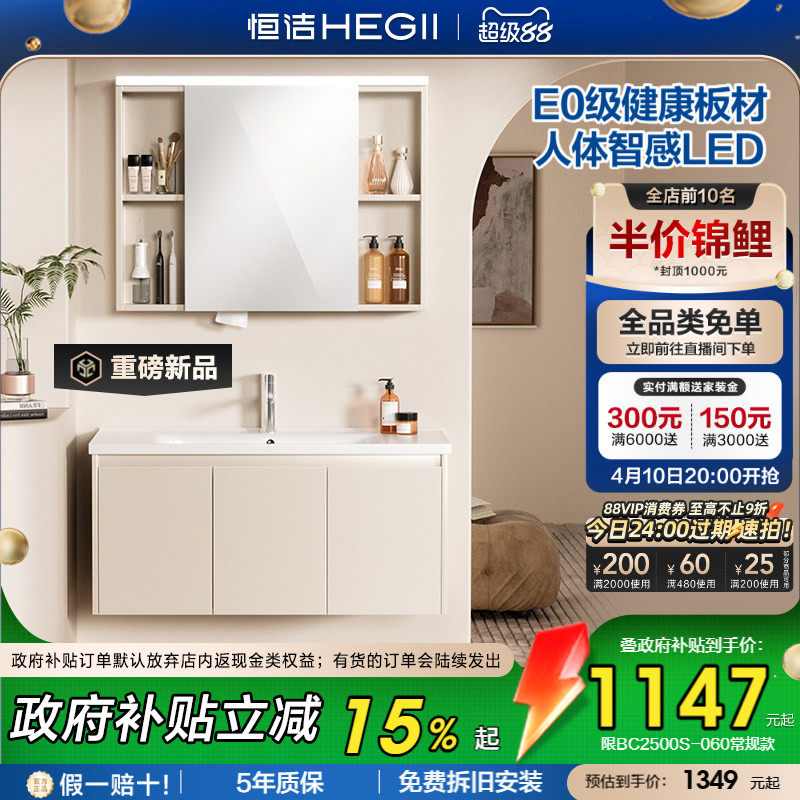 恒洁卫浴新款浴室柜组合陶瓷一体盆卫生间洗漱台洗手台盆柜2500S