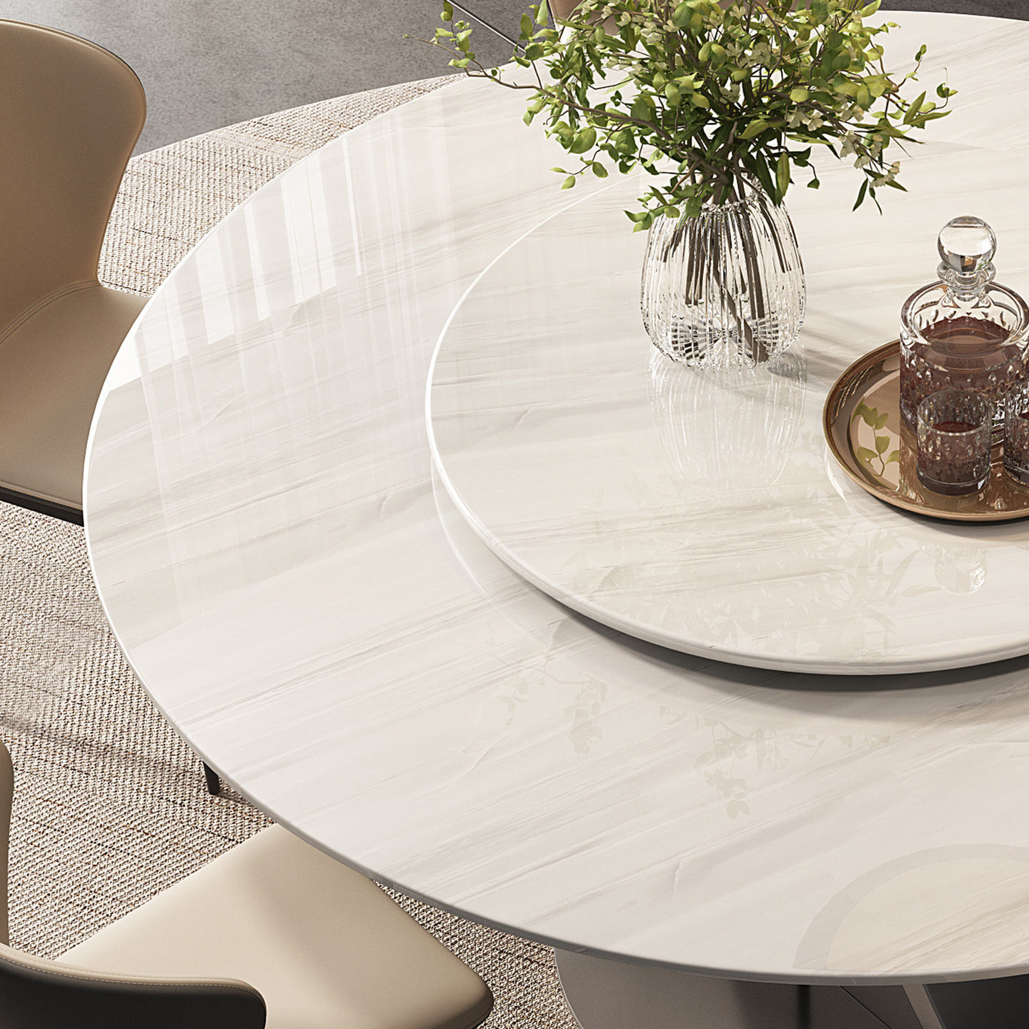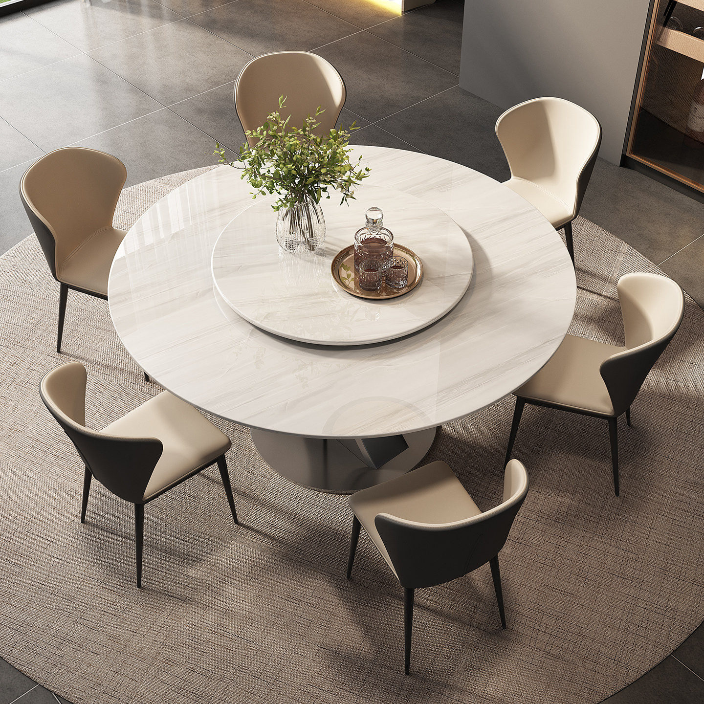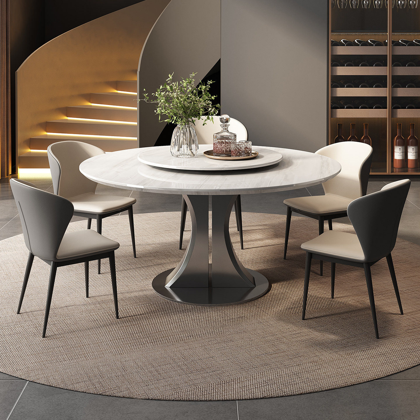 意式极简餐桌高级感大理石圆桌天然奢石卡里冰玉宝格丽黑玫瑰别墅